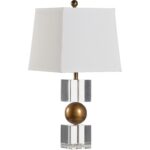 The Watts Table Lamp is a distinctive and versatile lighting solution that adds both function and sculptural appeal to your space. It features a unique acrylic block base, offering a clean, contemporary aesthetic, while the antique brass ball elegantly nested between the acrylic blocks adds a touch of warmth and timeless charm. This contrasting combination of materials creates a visually captivating centerpiece that enhances any decor. Topped with a crisp round white fabric shade