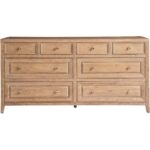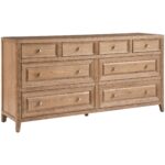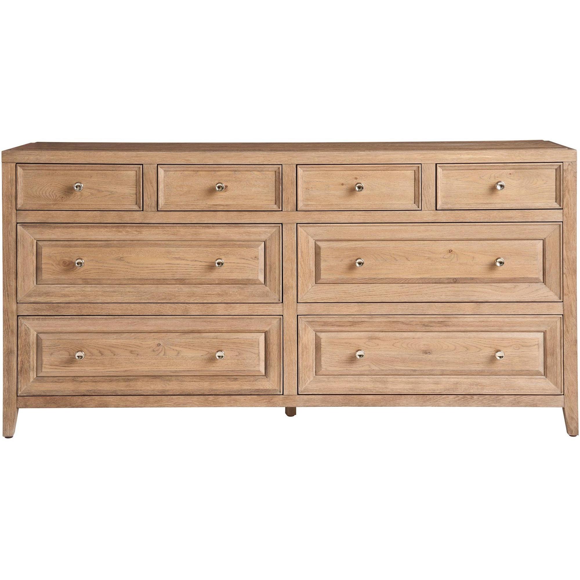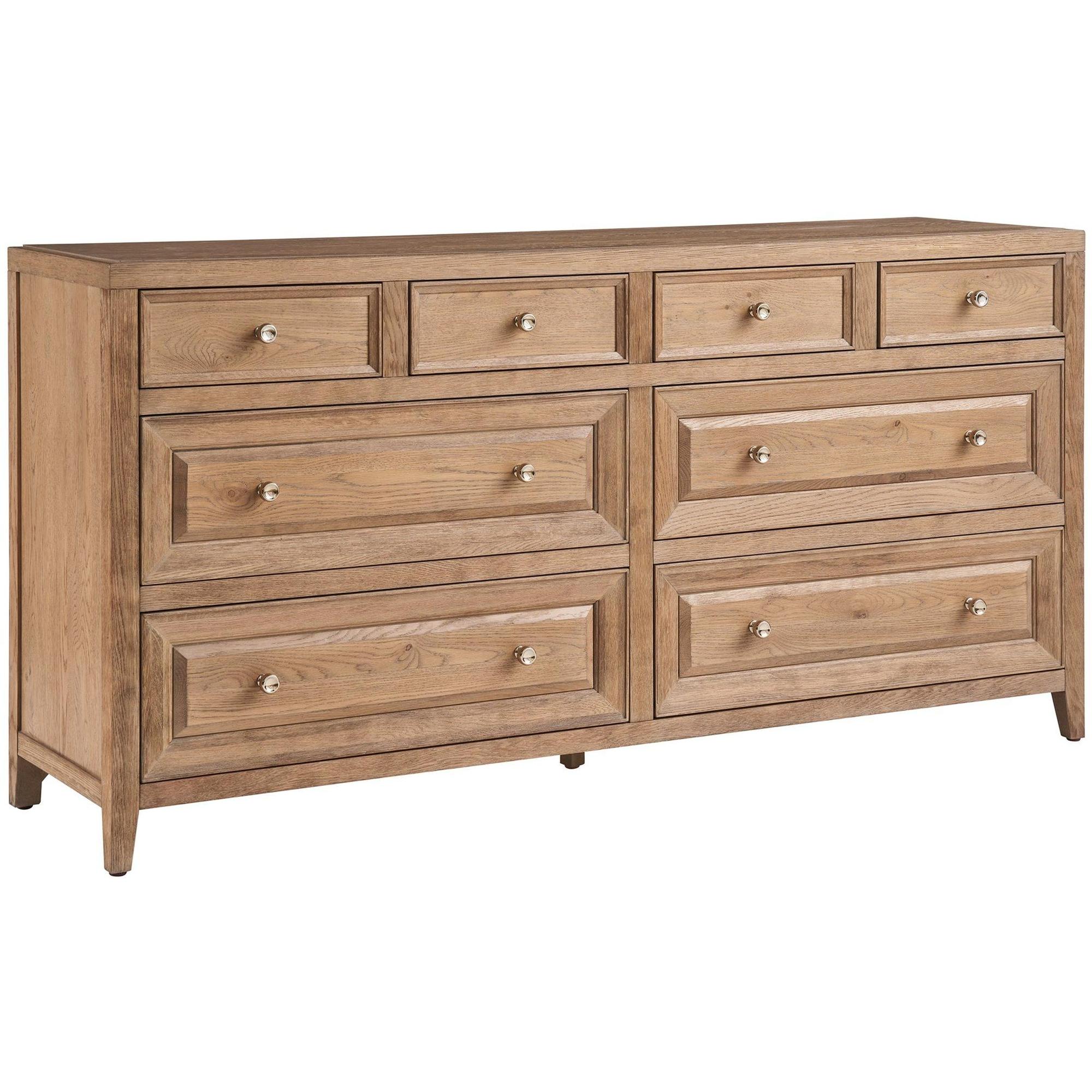 Boasting a classic appeal, the Weekender Dresser adds easy storage to spaces with eight drawers accented by simple silver pulls and a knotty oak finish.