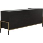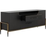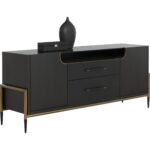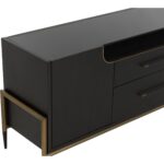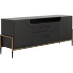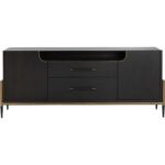Make a statement with this stylish sideboard that exudes prestige. Features a espresso acacia wood veneer with two soft closing drawers. Completed with black and antique brass iron handles with a coordinating base. As wood is an organic, porous material, these pieces will contain natural variation of texture and may also exhibit fine indentations and cracks. Wood pieces will also display a disparity of colour and grain, and visible knots and burls that add to the character of each piece.