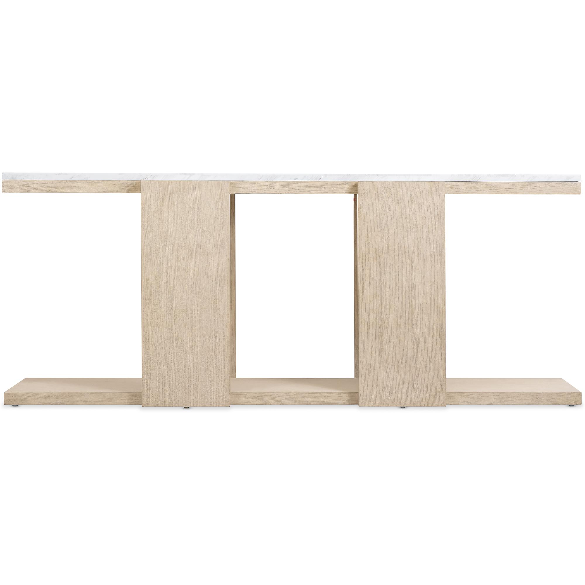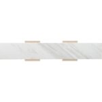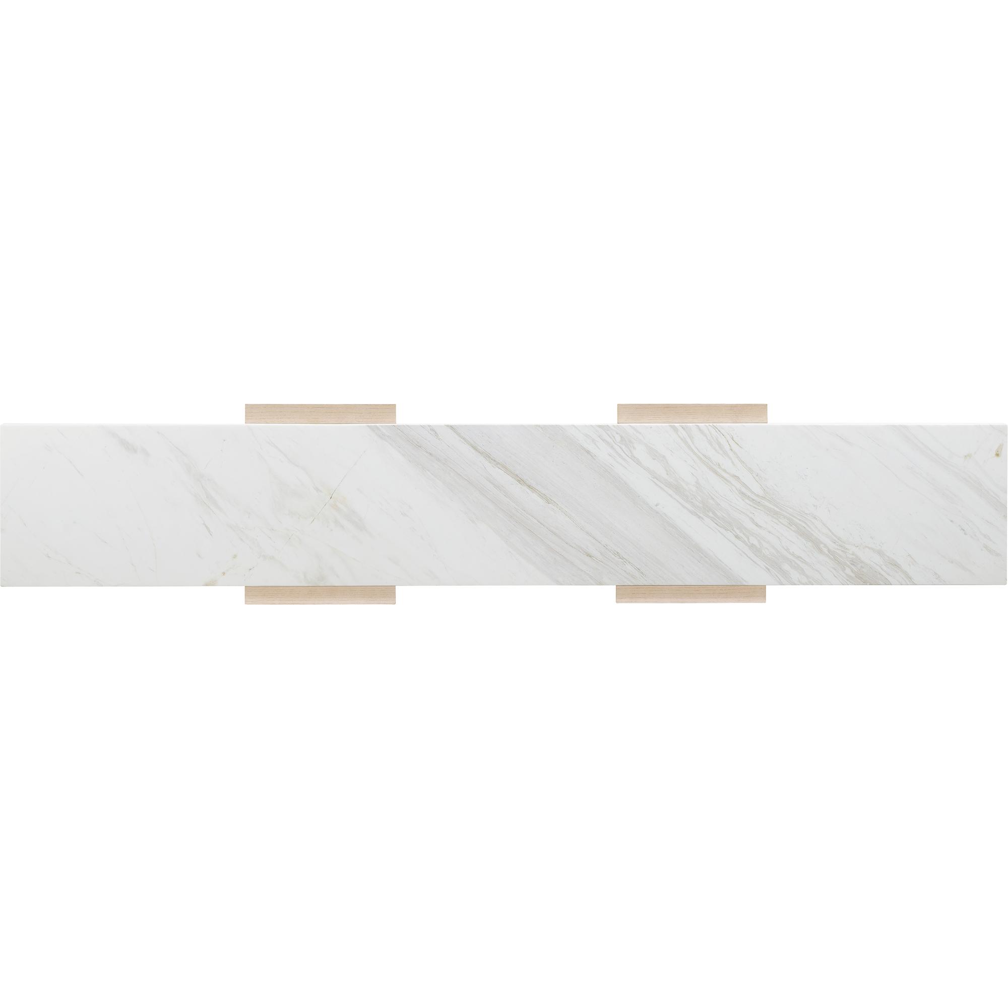 Finish: Polished Limestone finish on quartered oak veneers. The Volakas stone top showcases a natural blend of white, gray, and other organic tones for a unique, elegant finish.