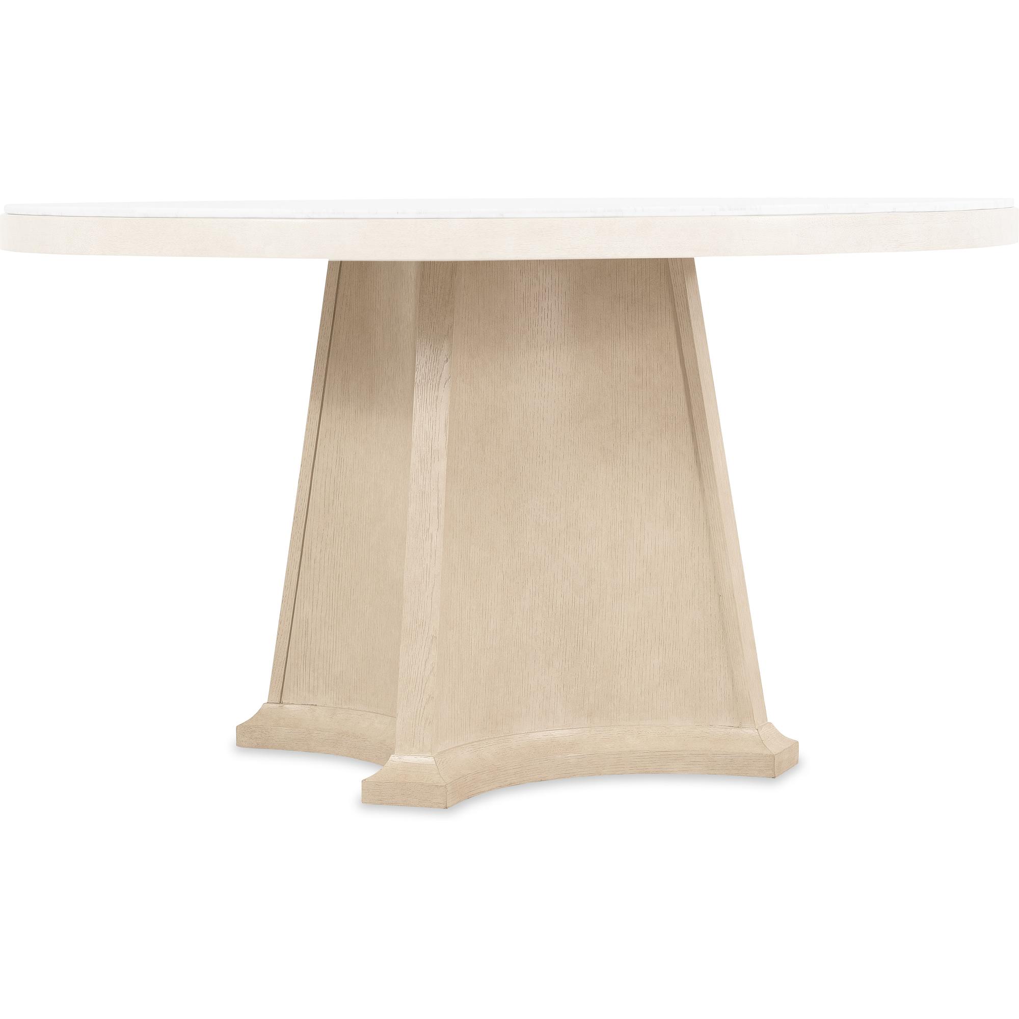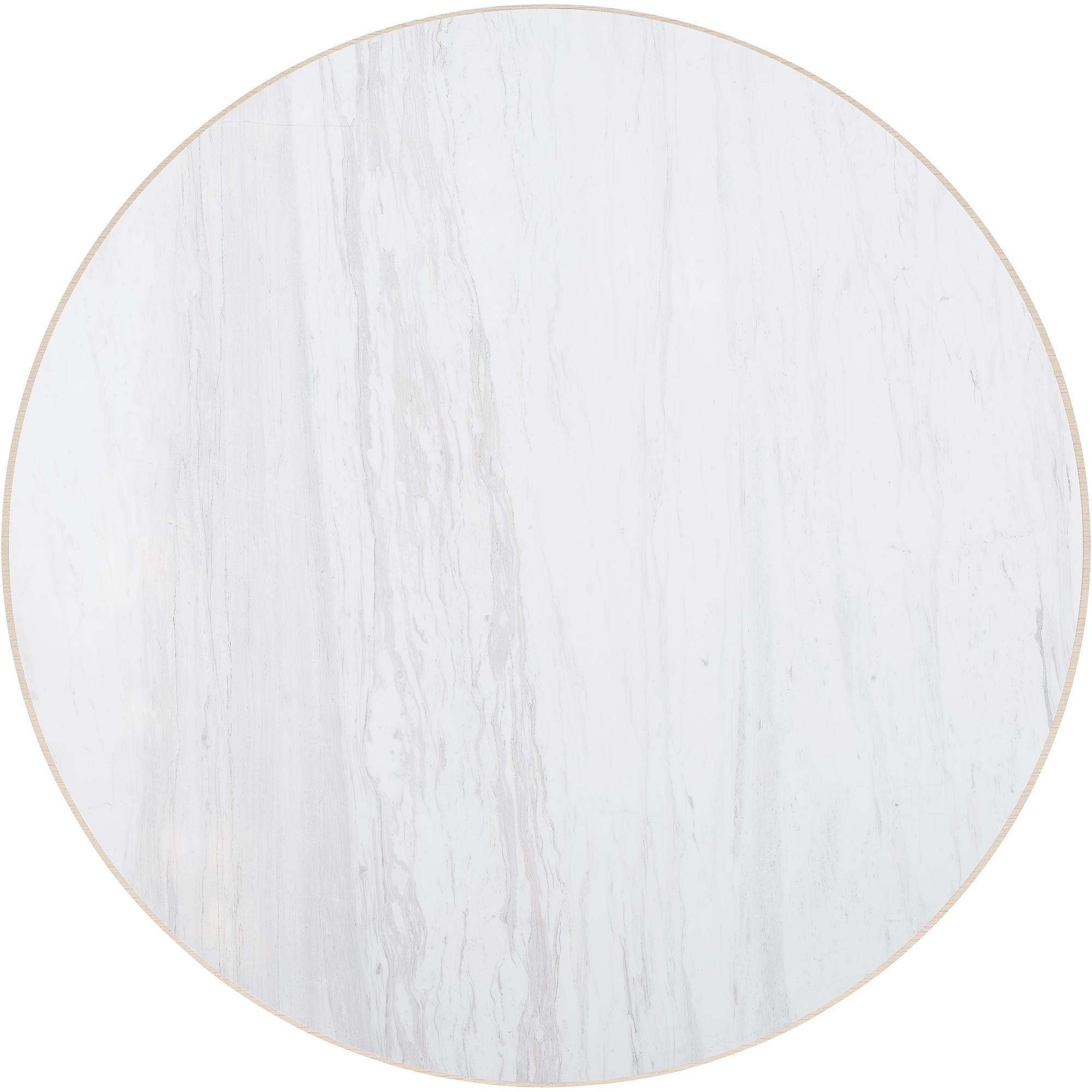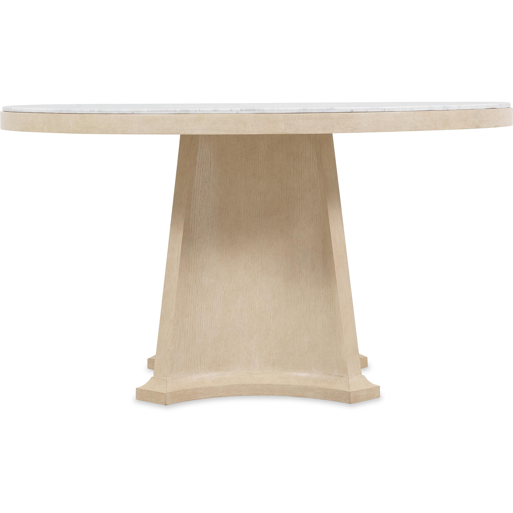 Features: Includes table base and top Round shape Volakas stone top Single pedestal base