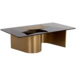 Bold and elegant, the Whisper Coffee Table is a staple for any living room area. The gorgeous brown tones of the tea tempered glass tabletop provide a gorgeous contrast to the gold S-shaped stainless steel base.