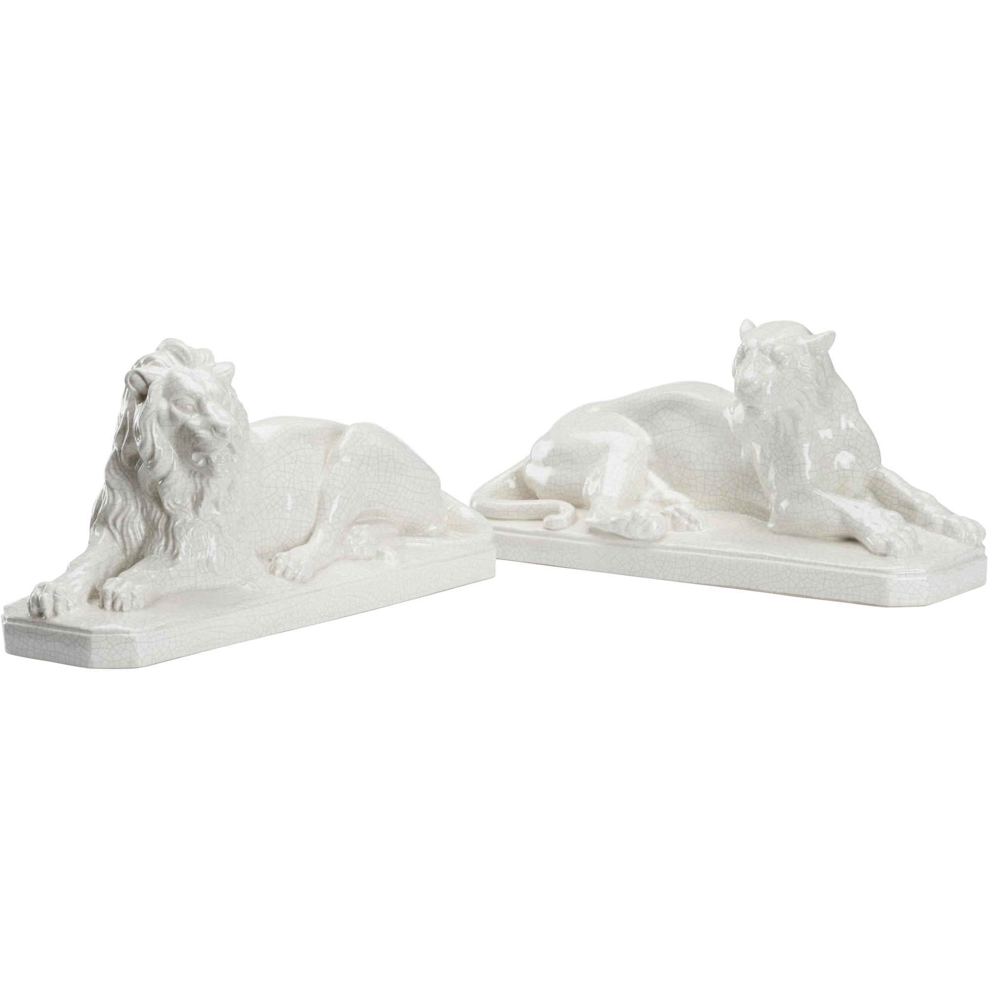The symbol of the lion has been an important symbol for many cultures for centuries. The White Lions Pair is simple in color and form, but brings grace and beauty to any design scheme.