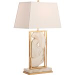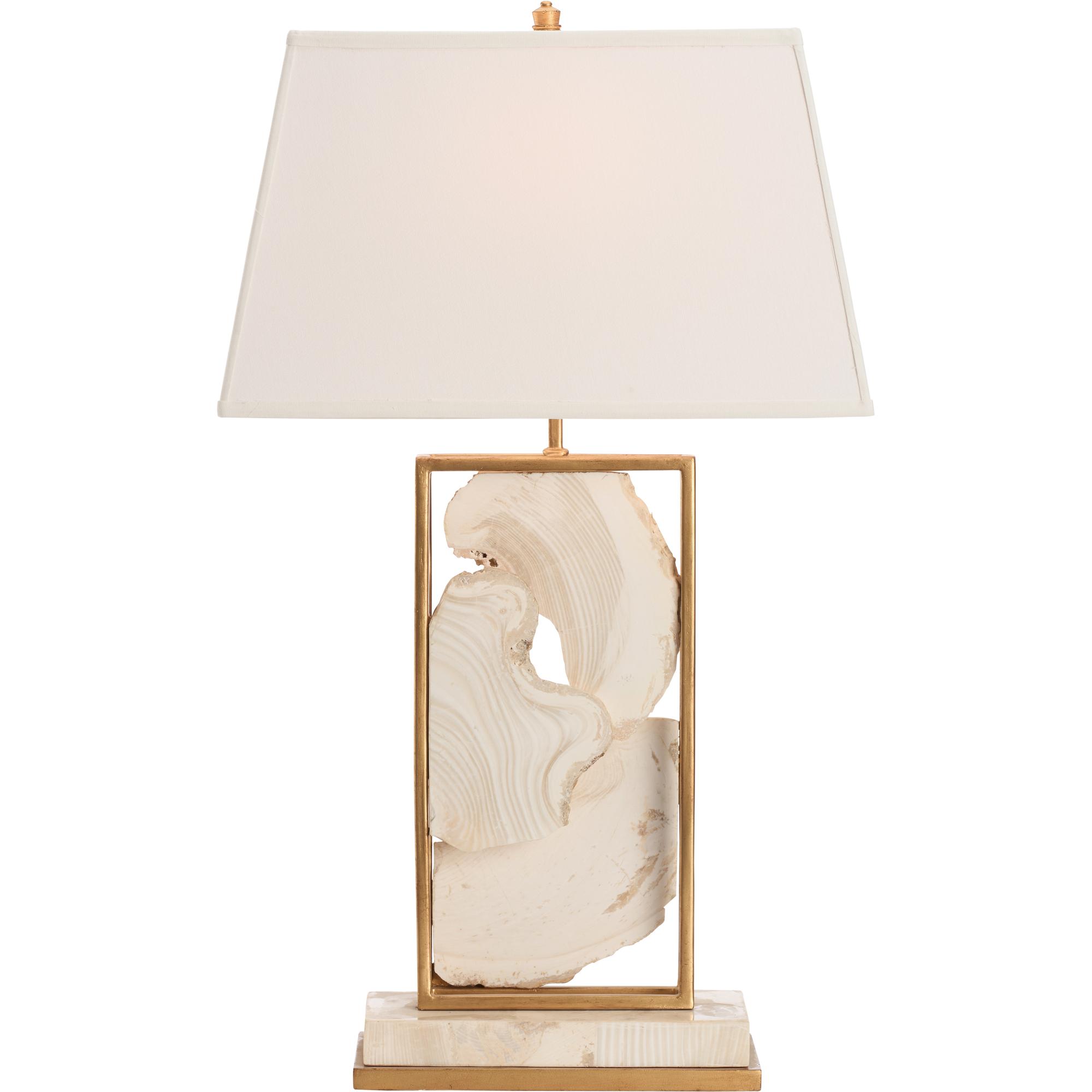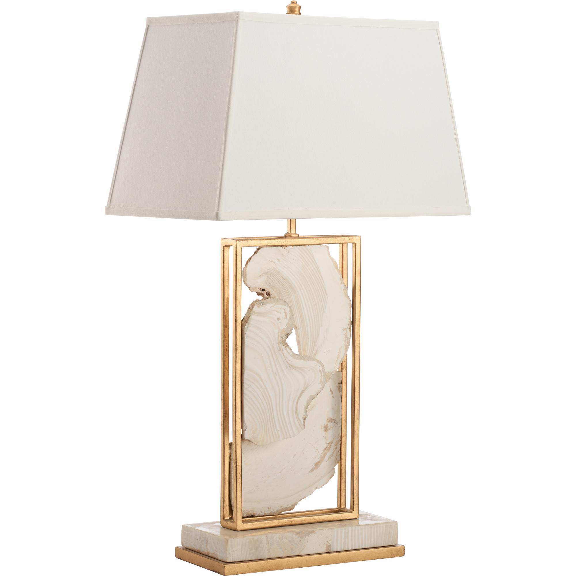 This unique and truly beautiful lamp features white stone encased in luxurious gold borders, offering a striking blend of natural elegance and opulence. Set atop a sleek marble base, it exudes sophistication and artistry, making it a one-of-a-kind statement piece that brings both beauty and intrigue. A true work of art.