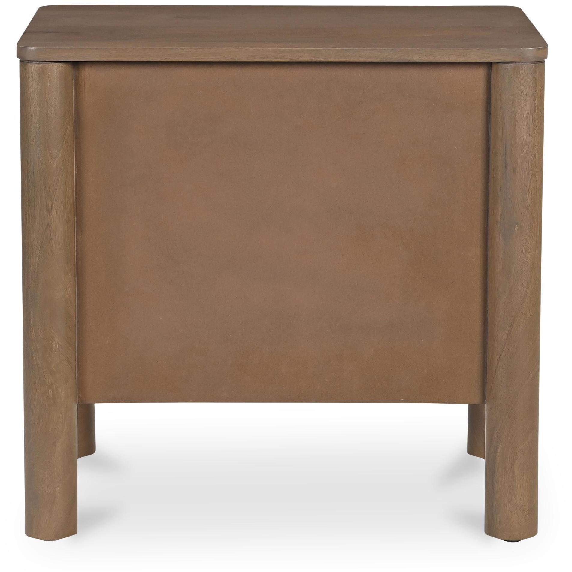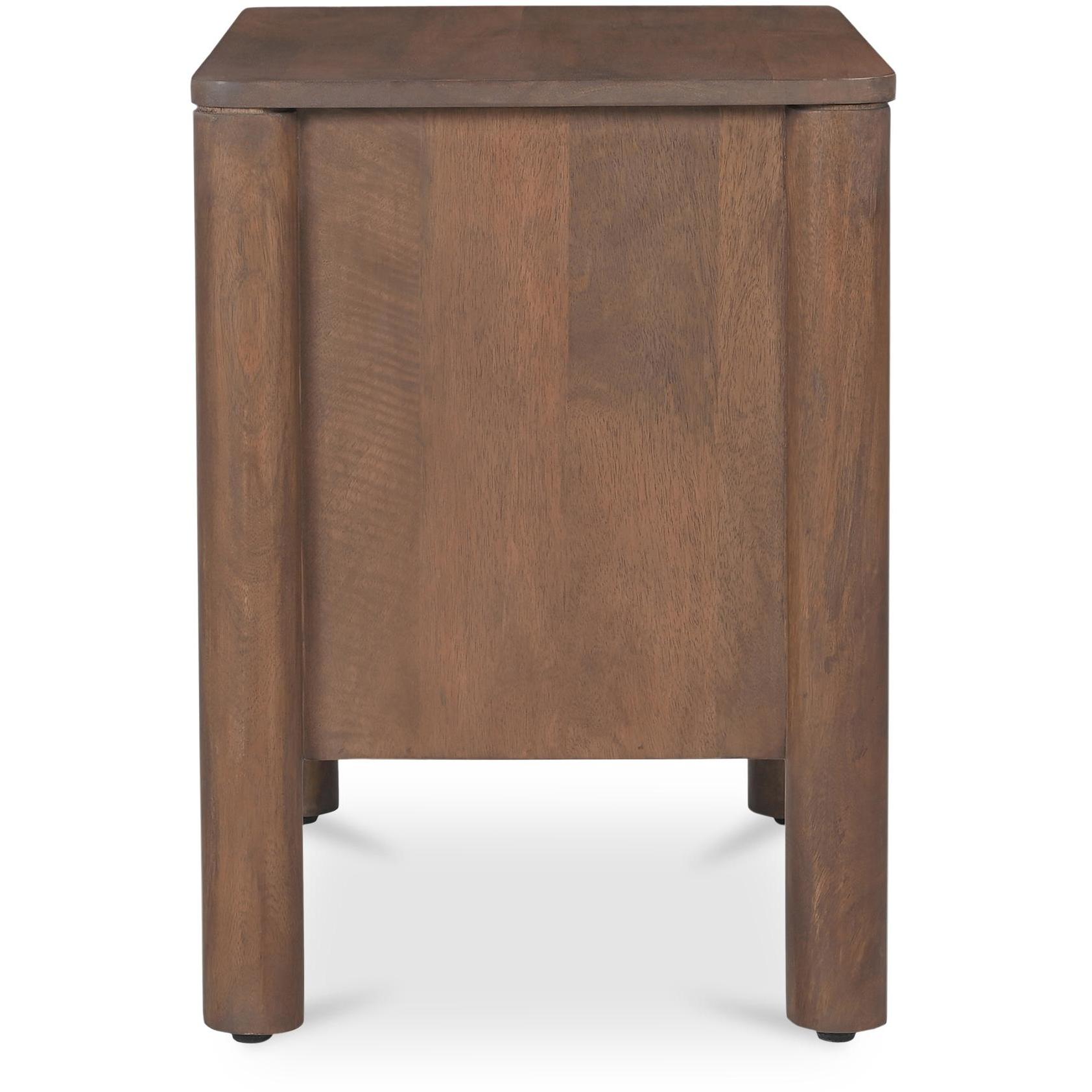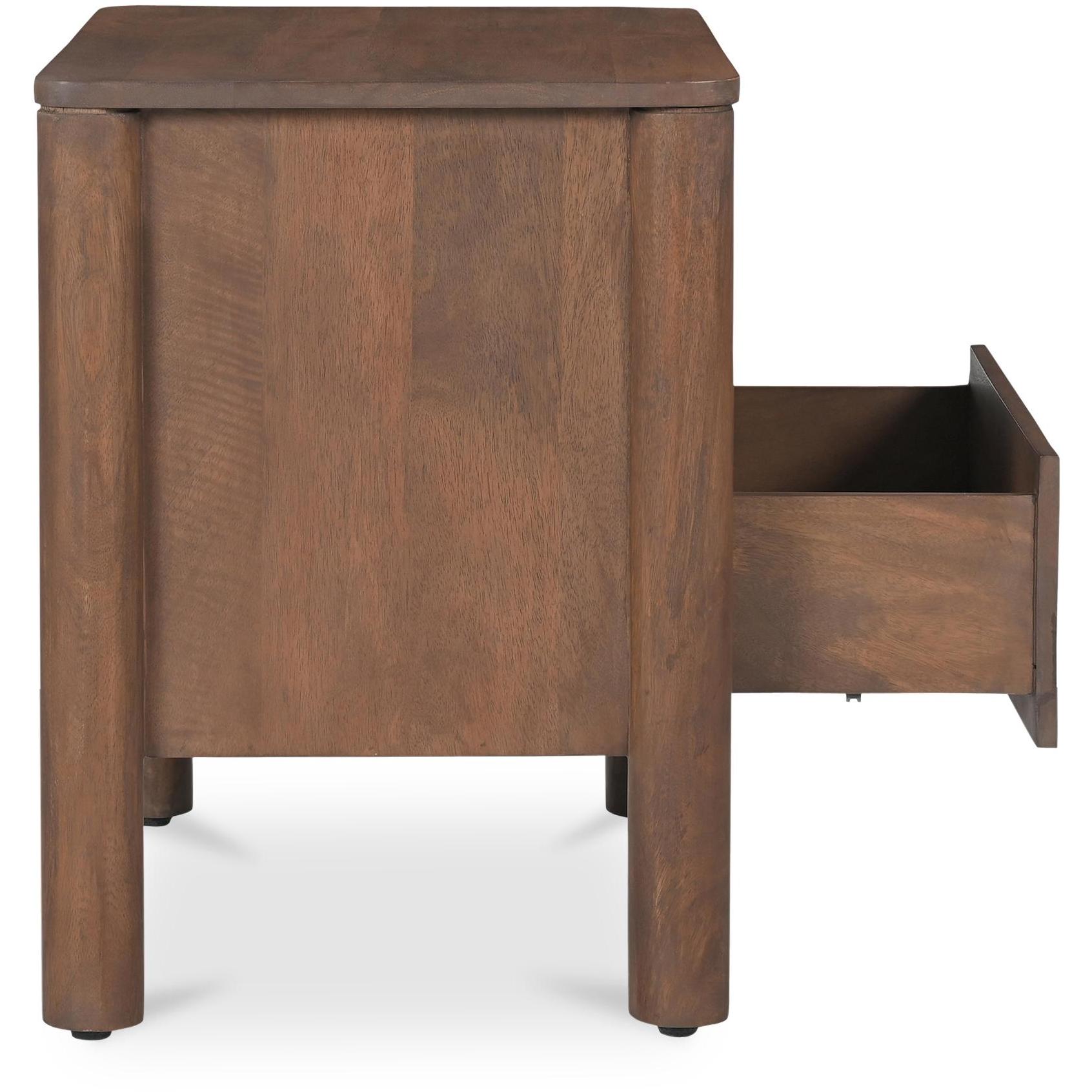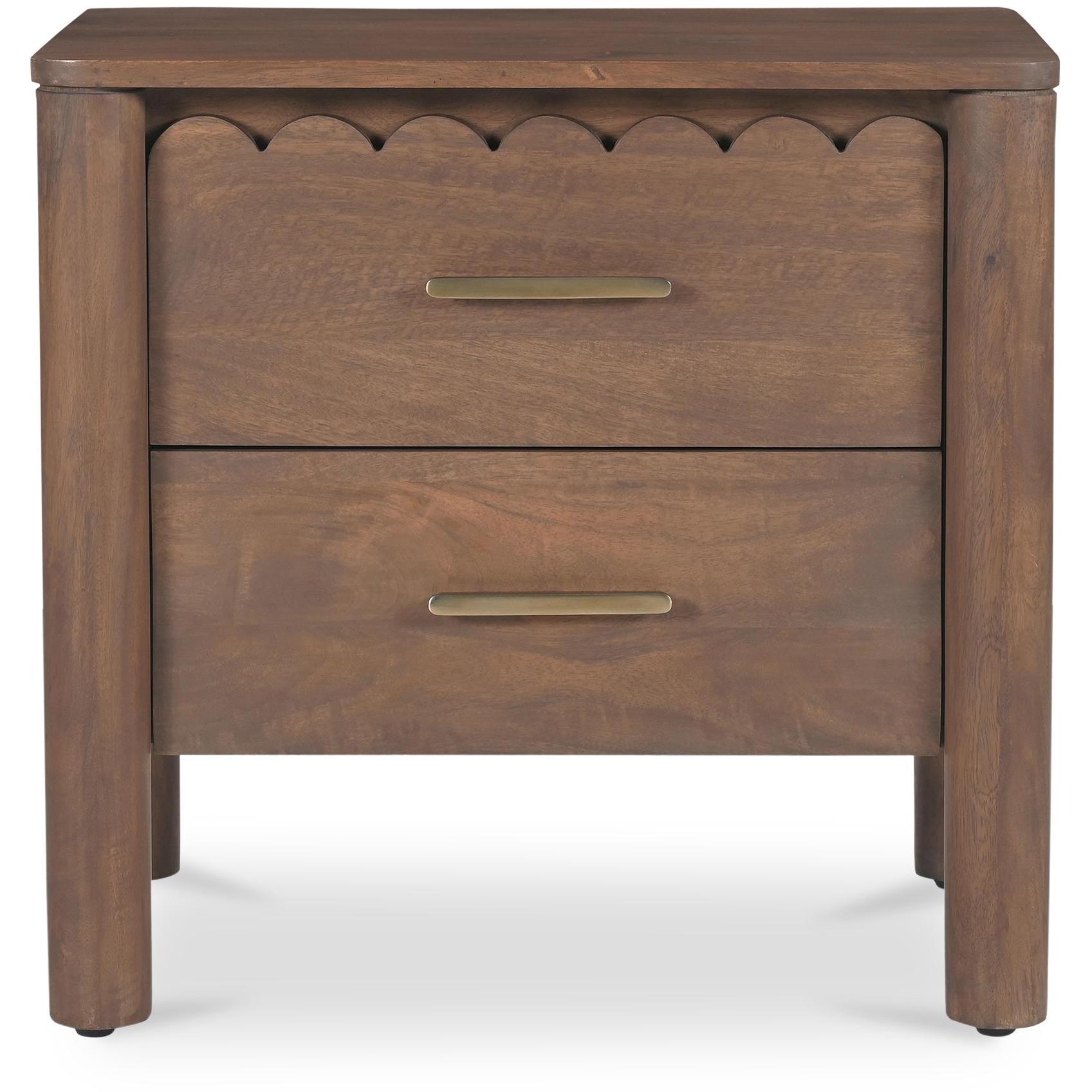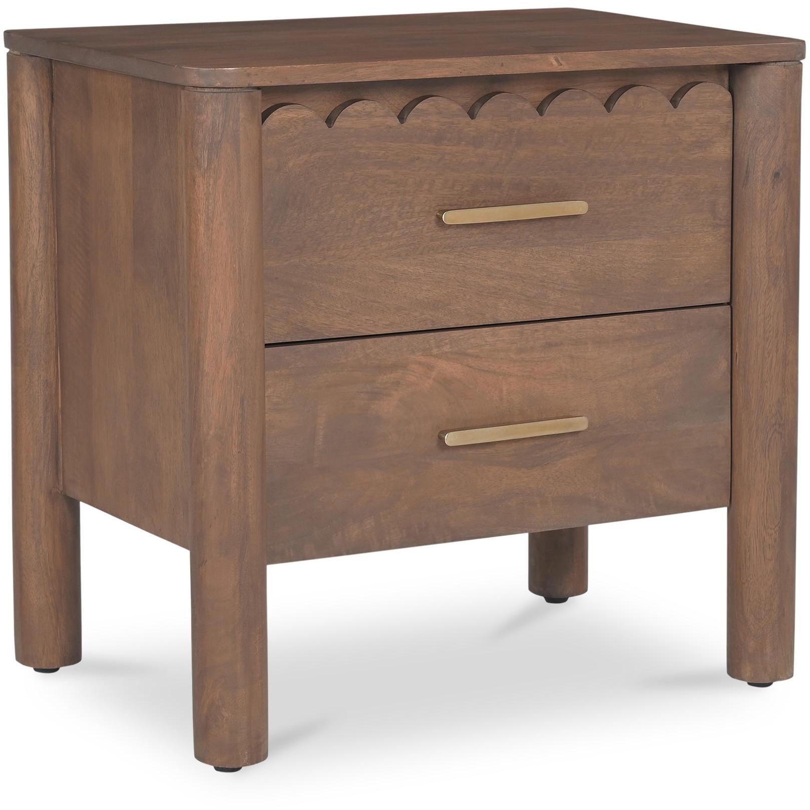 Bedside basics, but make them considered. Wiley mixes Scandinavian calm with Shaker-inspired simplicity, balancing soft geometric curves with monolithic round legs and a scalloped edge that feels quietly special. Mango wood brings natural warmth, while a tidy drawer keeps nightly essentials out of sight and close at hand. Finished in Vintage Brown, heavy brass handles add a crisp highlight each time you reach for them. Small footprint, big payoff for bedtime routines and slow mornings.