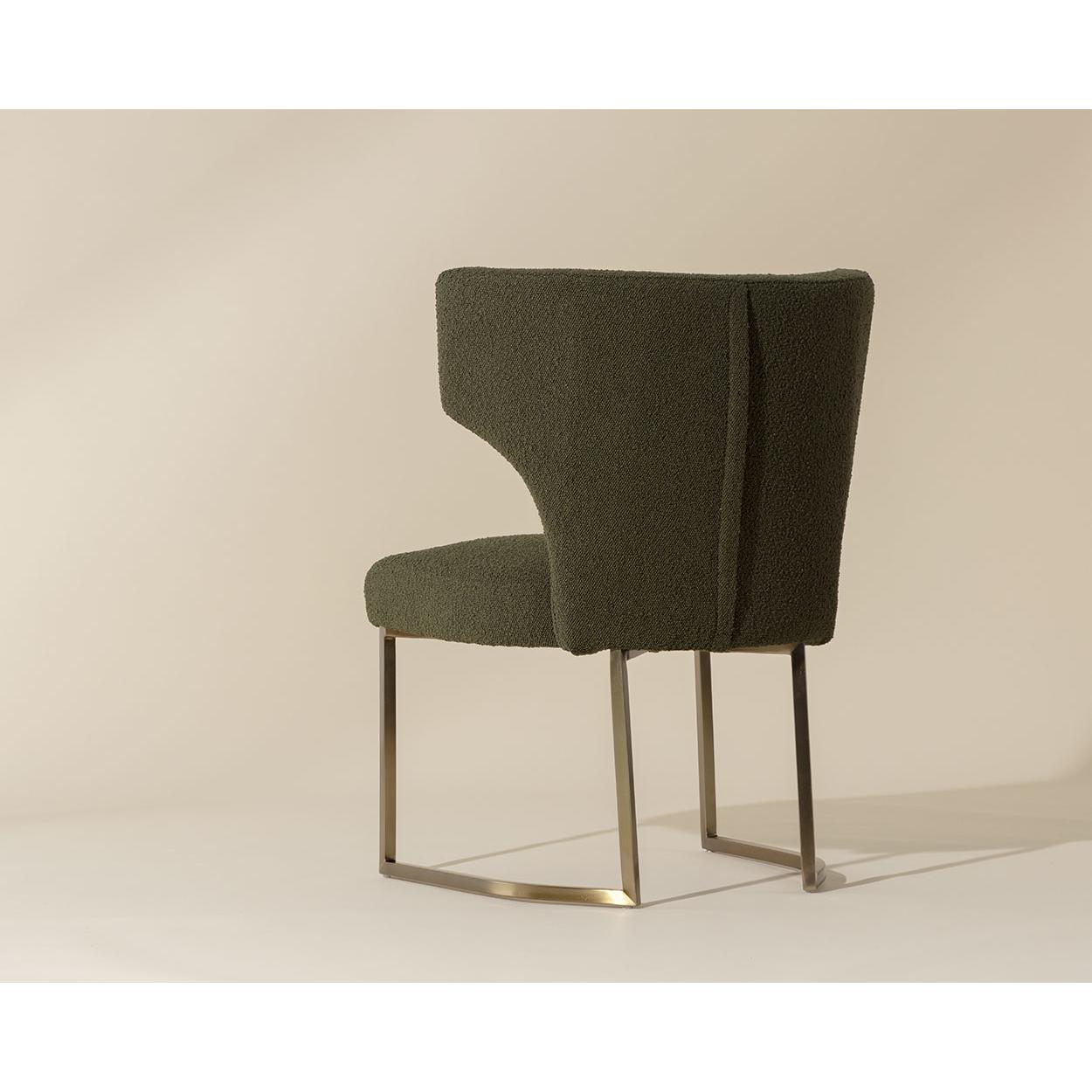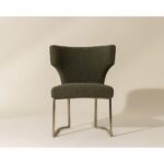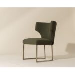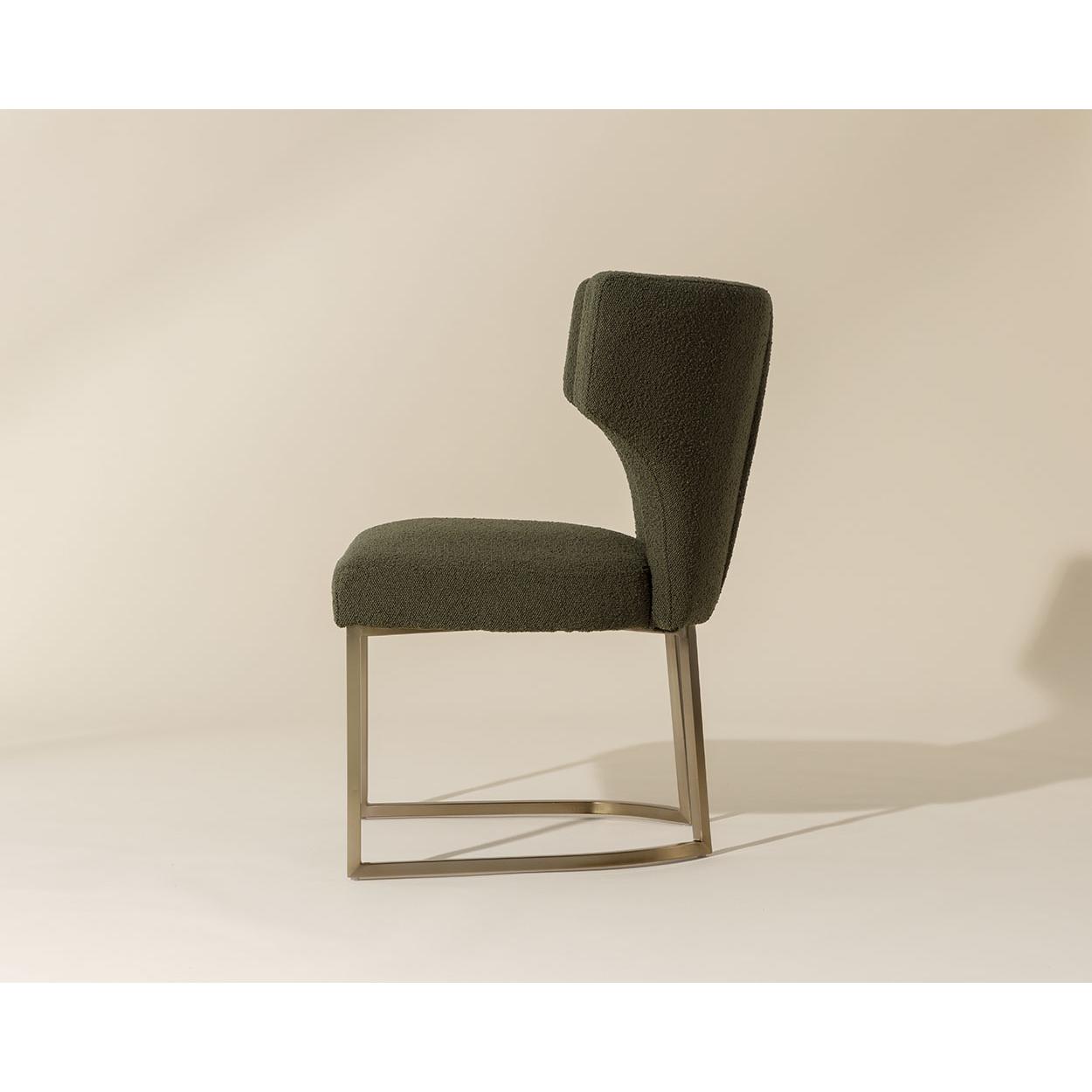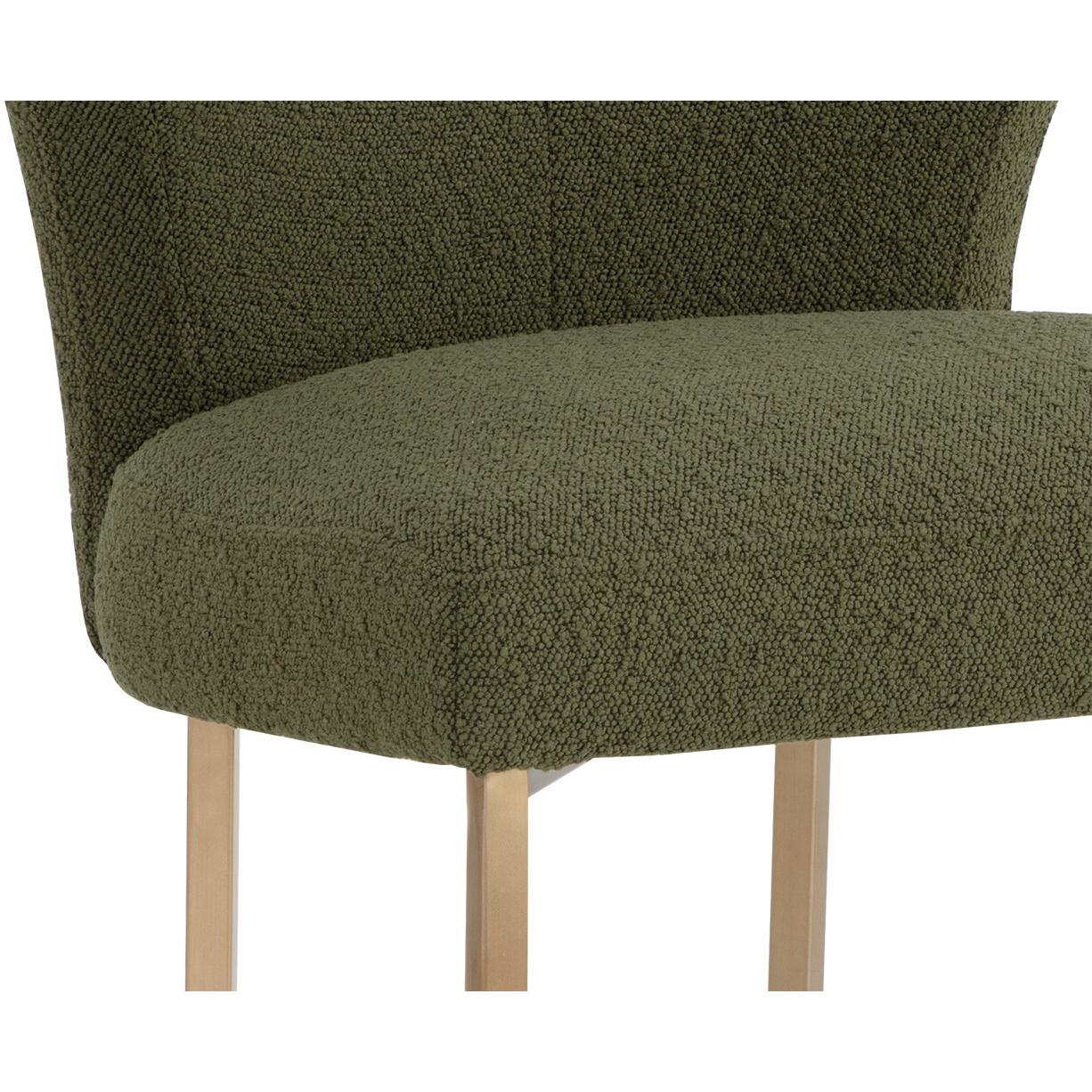 The elegant curves of the Willowdale Dining Chair will bring an air of sophistication to any dining space. Soft copenhagen olive fabric pairs beautifully with gold powder-coated stainless steel for a refined look.