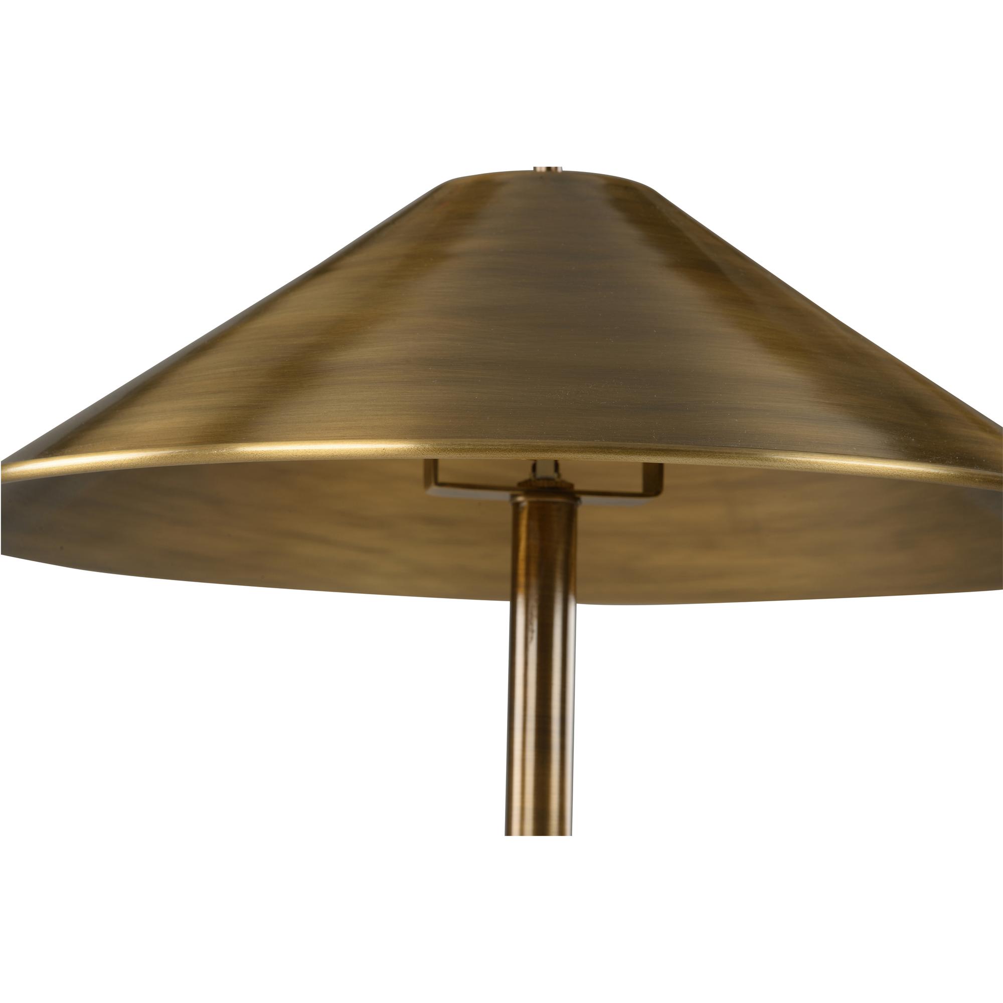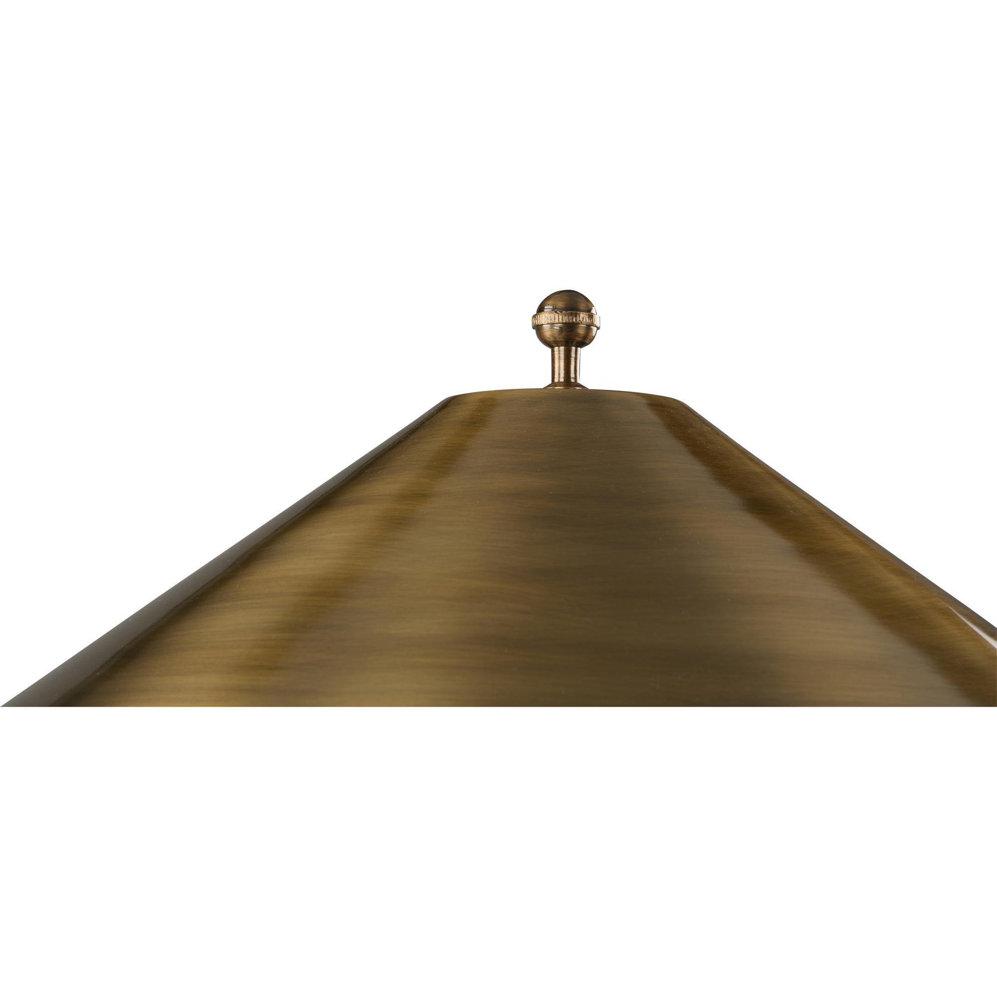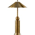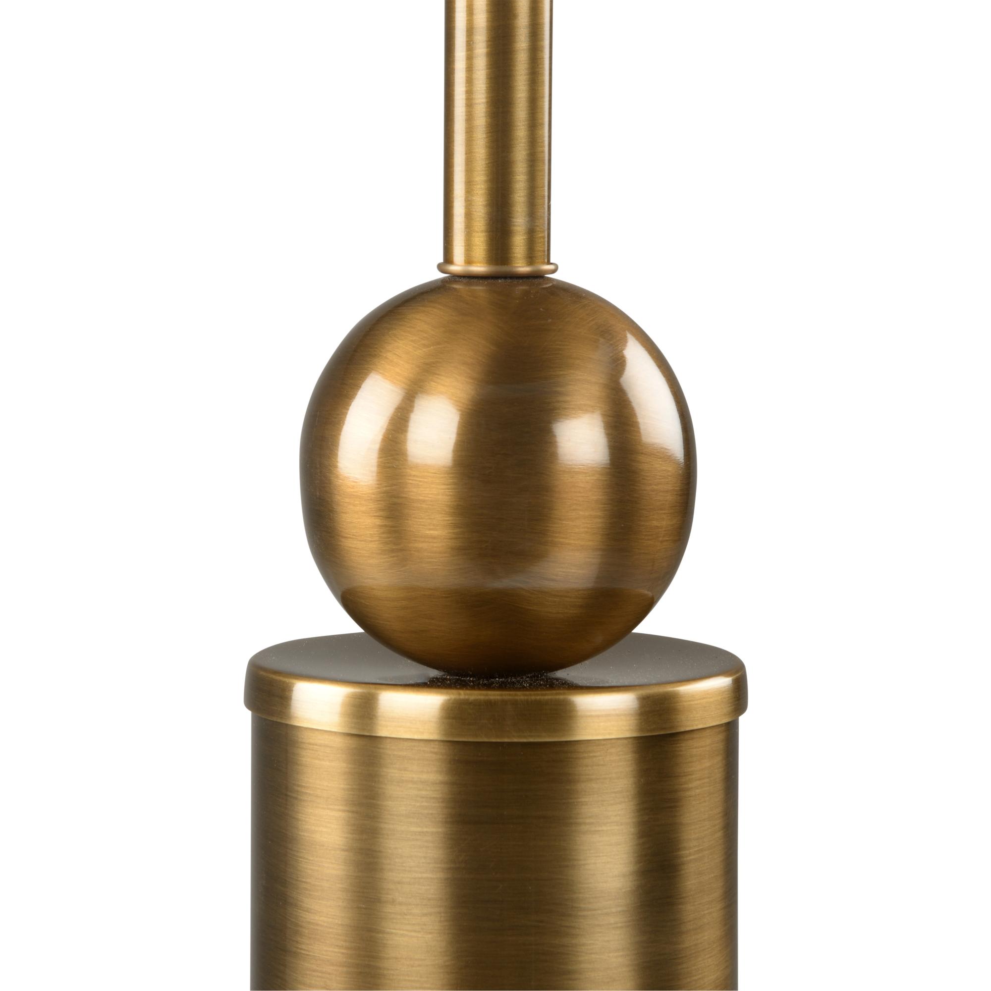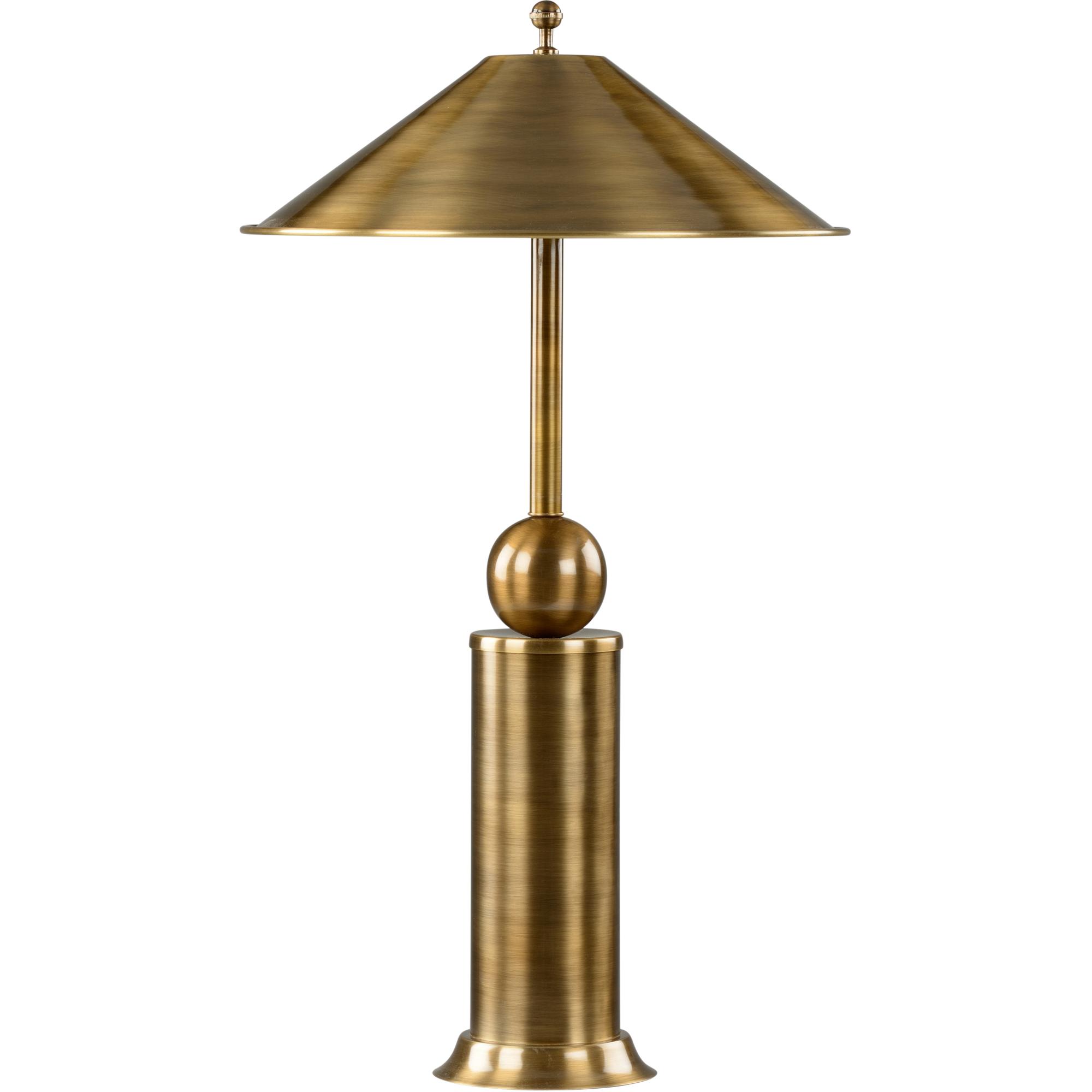 The Winbury Lamp is a sleek and sophisticated lighting piece that merges modern design with vintage charm. Crafted from brass with an antiqued finish, this lamp features a cylindrical base and spherical accent that exude a minimalist aesthetic while providing a sturdy foundation. The wide, flared brass shade enhances the lamp’s elegant profile, creating a warm and focused glow perfect for desk spaces, reading nooks, or bedside tables. With its timeless brass finish and contemporary silhouette, this lamp brings an understated yet luxurious touch to any interior, blending seamlessly into both classic and modern settings.
