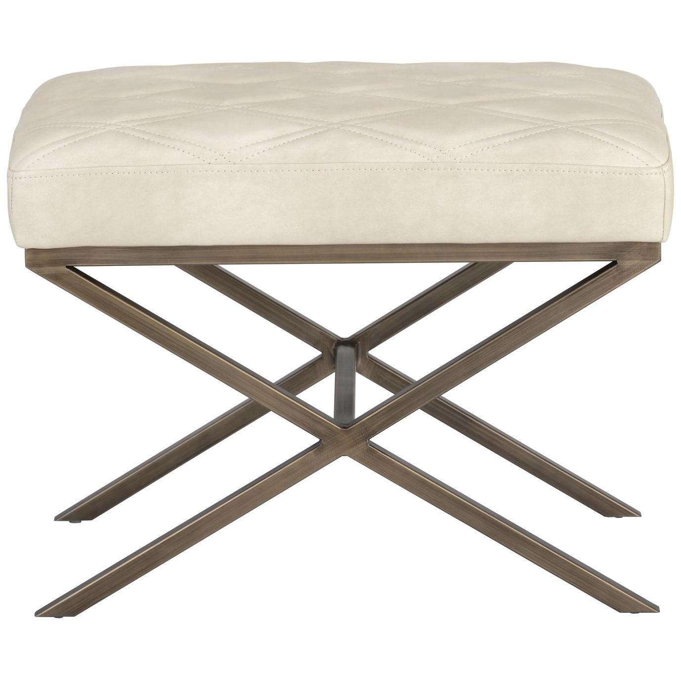This handsome stool combines Old English flair with mid-century style. Features a double-stitched diamond pattern on the seat with an antique brass steel x-base. Stocked in our bravo cream, havana dark brown and tobacco tan faux leather. Handle With Care: This design has been crafted with faux leather. Faux leather is manufactured to reflect the natural characteristics of leather; as such, colour variations, markings, wrinkles, grooves, and light scratches are appreciated characteristics. No two pieces will be alike.