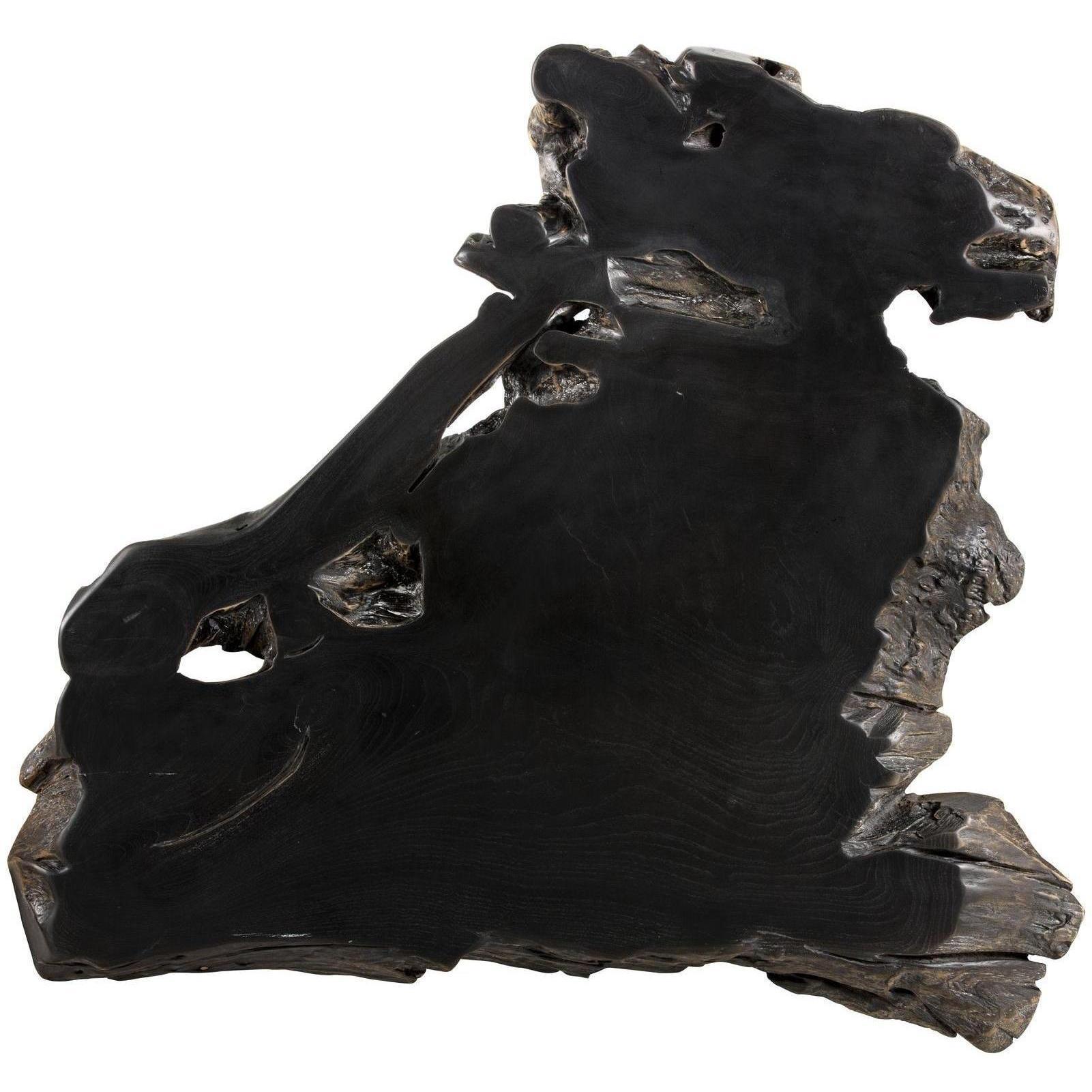 - Made out of organic reclaimed dark brown solid teak root