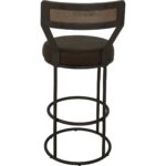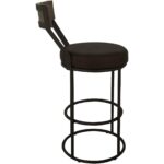 The Xel-Ha collection stool beautifully combines industrial and rustic design elements. It has a sturdy metal frame with a circular base and footrest supports, providing stability and durability. The seat is round and cushioned for comfort, while the backrest features an eye-catching wooden panel, adding warmth and character to the overall design. This versatile stool is ideal for modern, industrial, or eclectic spaces, seamlessly blending style and functionality.