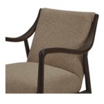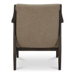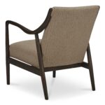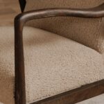 The Yates accent chair’s solid oak frame and sumptuous faux shearling merge the coziness of plush upholstery with the timeless beauty of classic craftsmanship. Its deep brown finish enhances the wood’s natural grain, offering traditional charm to its slim, mid-century design. The curved, slender arms broaden for restful support, balancing the chair’s sleek profile with practicality.