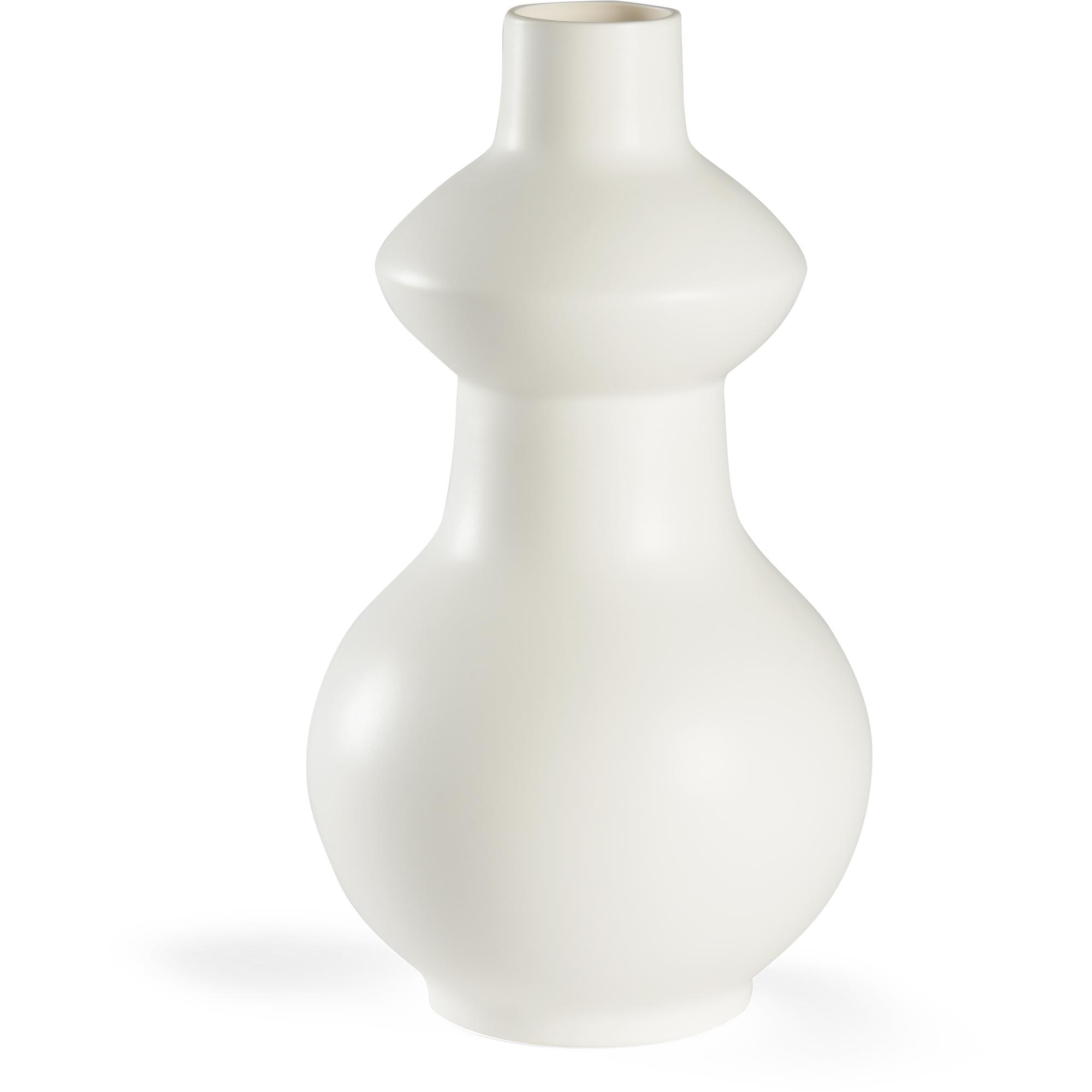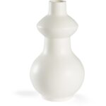 Add a modern touch to any design with Yokoyama Vase. This 14″ matte white glazed ceramic vase has graceful curves. The unique silhouette and simple design make this an ideal accent for any space. You may add flowers or pair with other vases for a different design aesthetic. Designed by Bradshaw Orrell.
