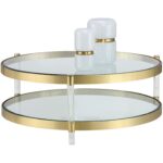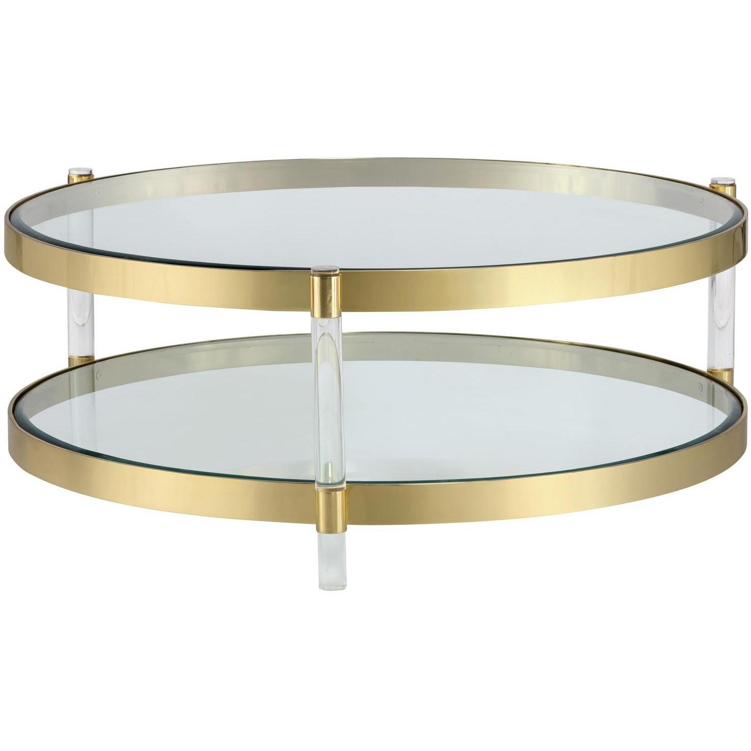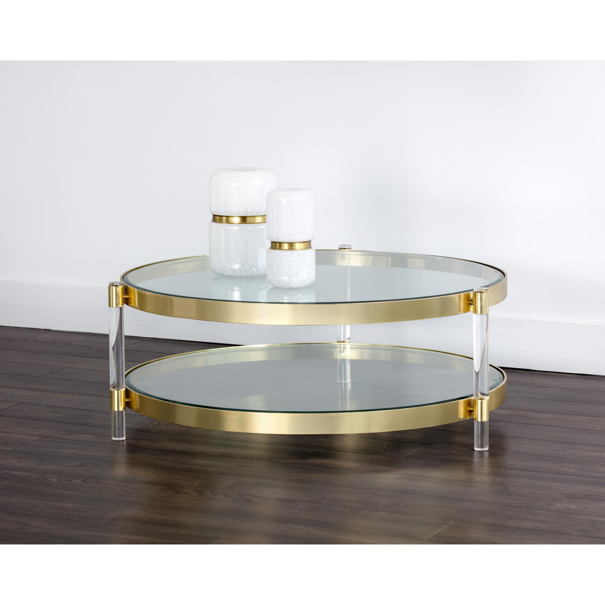 This glamorous coffee table is a showstopper. Featuring a tubular lucite frame and tempered glass top and bottom shelves. A stainless steel base with an antique brass finish completes the design. Perfect for living and lounge spaces in residential and contract environments. Made in India. With refined craftsmanship, this design was brought to life by skilled local artisans. Due to the nature of handcraftsmanship, unique imperfections such as fissures, markings and variations in colour and shape are welcomed and appreciated characteristics for a truly one-of-a-kind piece.