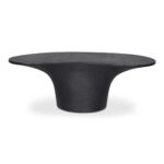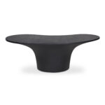 A bold blend of style and stability, the Yumi outdoor coffee table features a freeform top perfectly balanced upon a pedestal-style base for a modern yet grounded look. Crafted from glass fiber-reinforced Concrete that combines cement, glass fiber, and Styrofoam for durability and lightness, its rough texture adds a layer of tactile interest, transforming its contemporary form into a centerpiece of conversation.