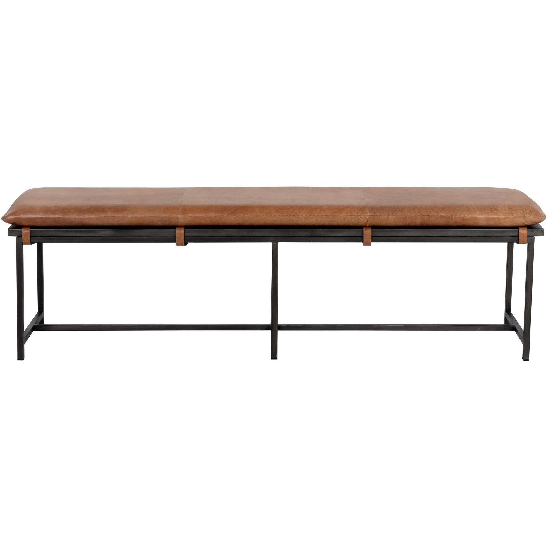An incredibly designed bench that offers a refined and timeless style. Upholstered in tan leather and completed with a gunmental steel frame. Handle with Care: This design has been crafted with 100% leather. Leather is a natural material; as such, colour variations, markings, wrinkles, grooves and light scratches are acceptable and appreciated characteristics. No two pieces are alike. Visit our Product Care page for more information on how to ensure the lasting beauty of this piece. Made in India. With refined craftsmanship, this design was brought to life by skilled local artisans. Due to the nature of handcraftsmanship, unique imperfections such as fissures, markings and variations in colour and shape are welcomed and appreciated characteristics for a truly one-of-a-kind piece.