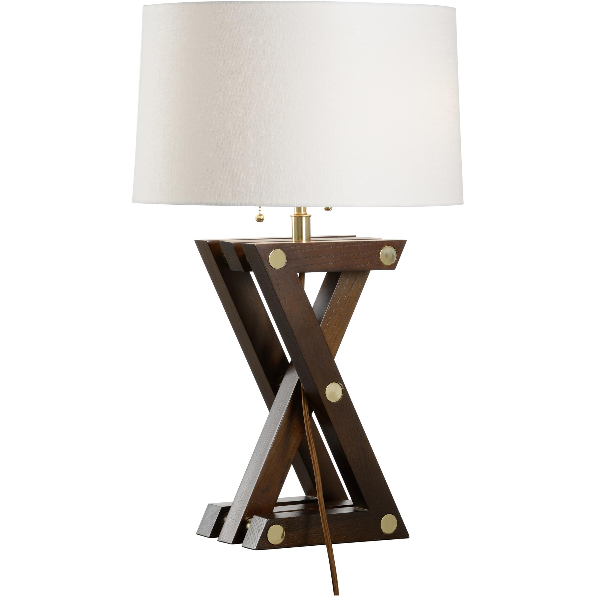Illuminate your space with the bold and modern design of our Zander Table Lamp. Featuring a striking crossed walnut base accented with sleek brass bolts, this lamp brings a touch of industrial chic to any room. The rich, dark walnut finish adds warmth and texture, while the sturdy construction ensures durability. Topped with a classic off-white shade, this lamp offers a soft, ambient glow that creates a welcoming atmosphere. Perfect for a living room, bedroom, or office, the Zander Table Lamp is a versatile piece that seamlessly blends style and functionality, making it a standout addition to your decor.