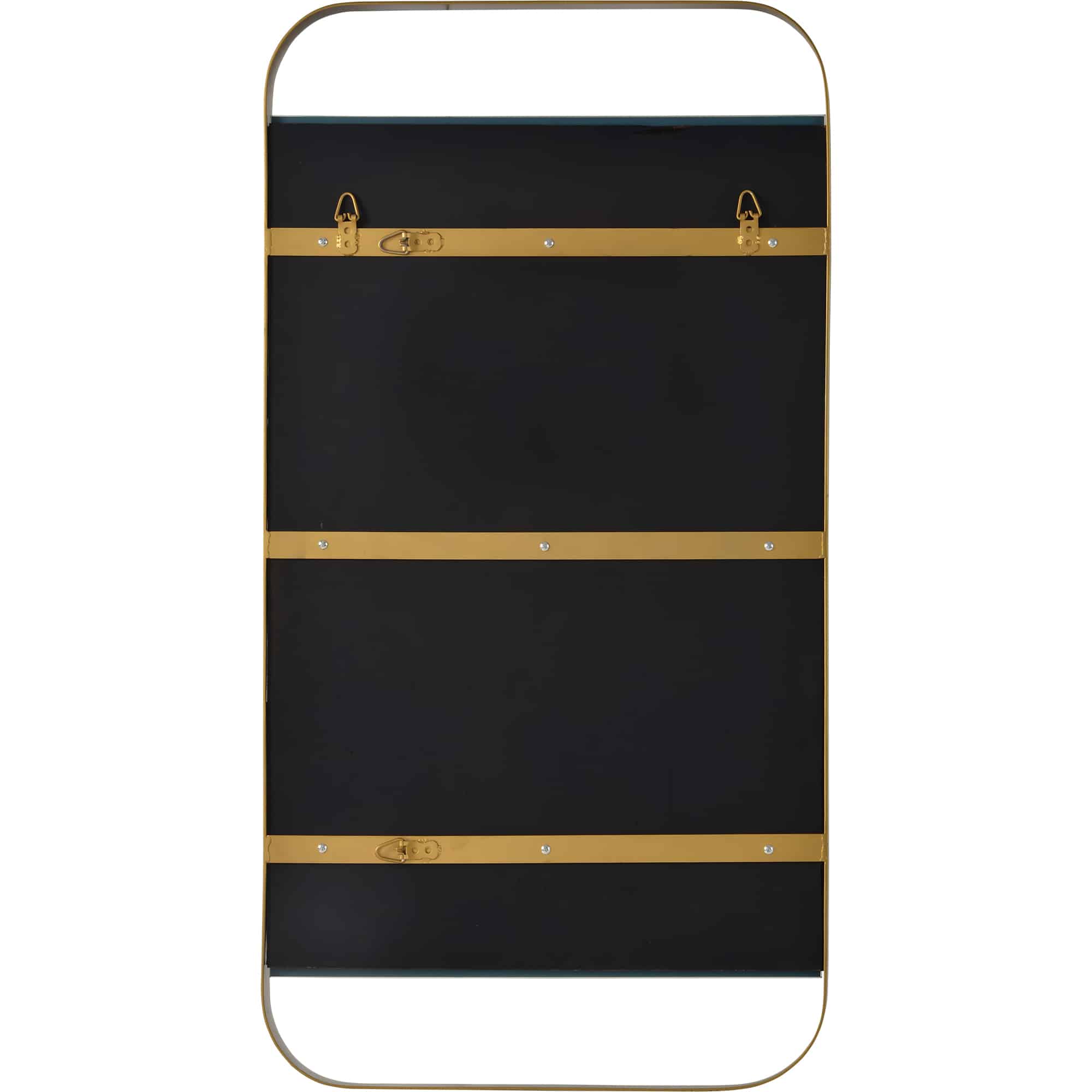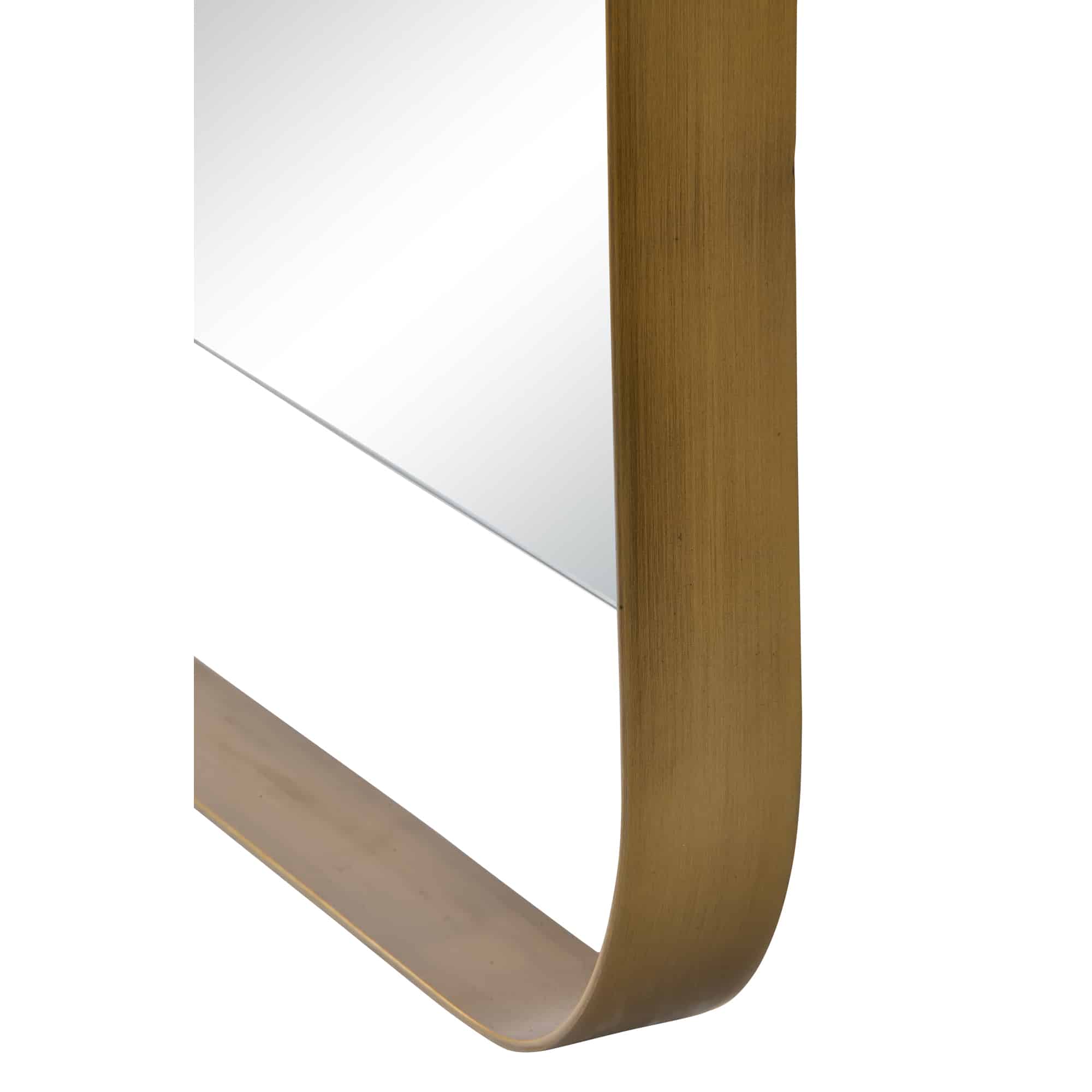 Modern minimalism fills the entryway with this wall mirror. The contemporary appeal of the painted antique brass finished iron frame is beautifully balanced by the streamlined structure. Pair with ornate accessories to complement the design’s palette.