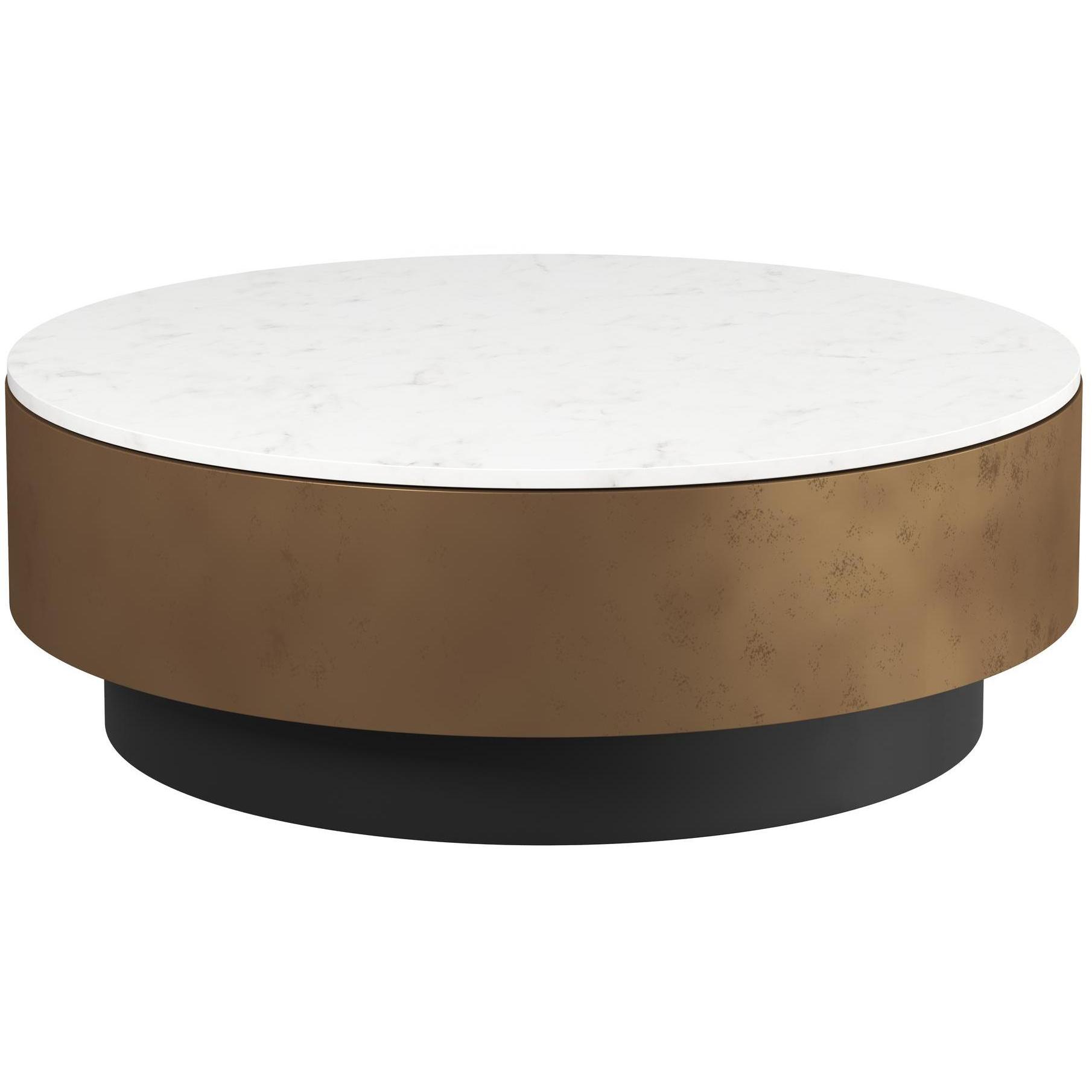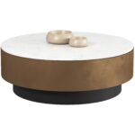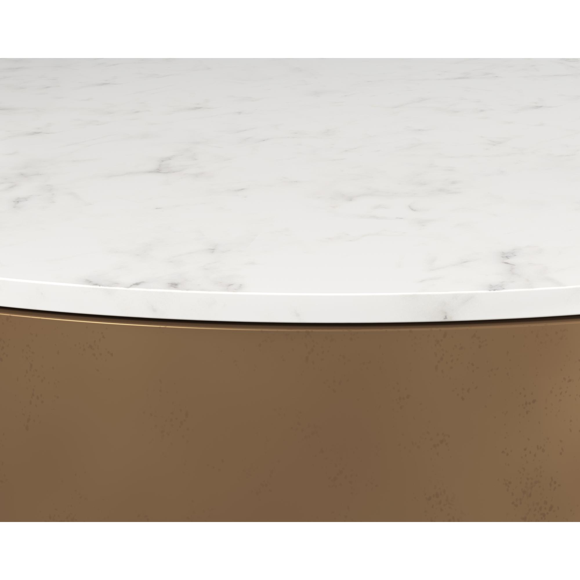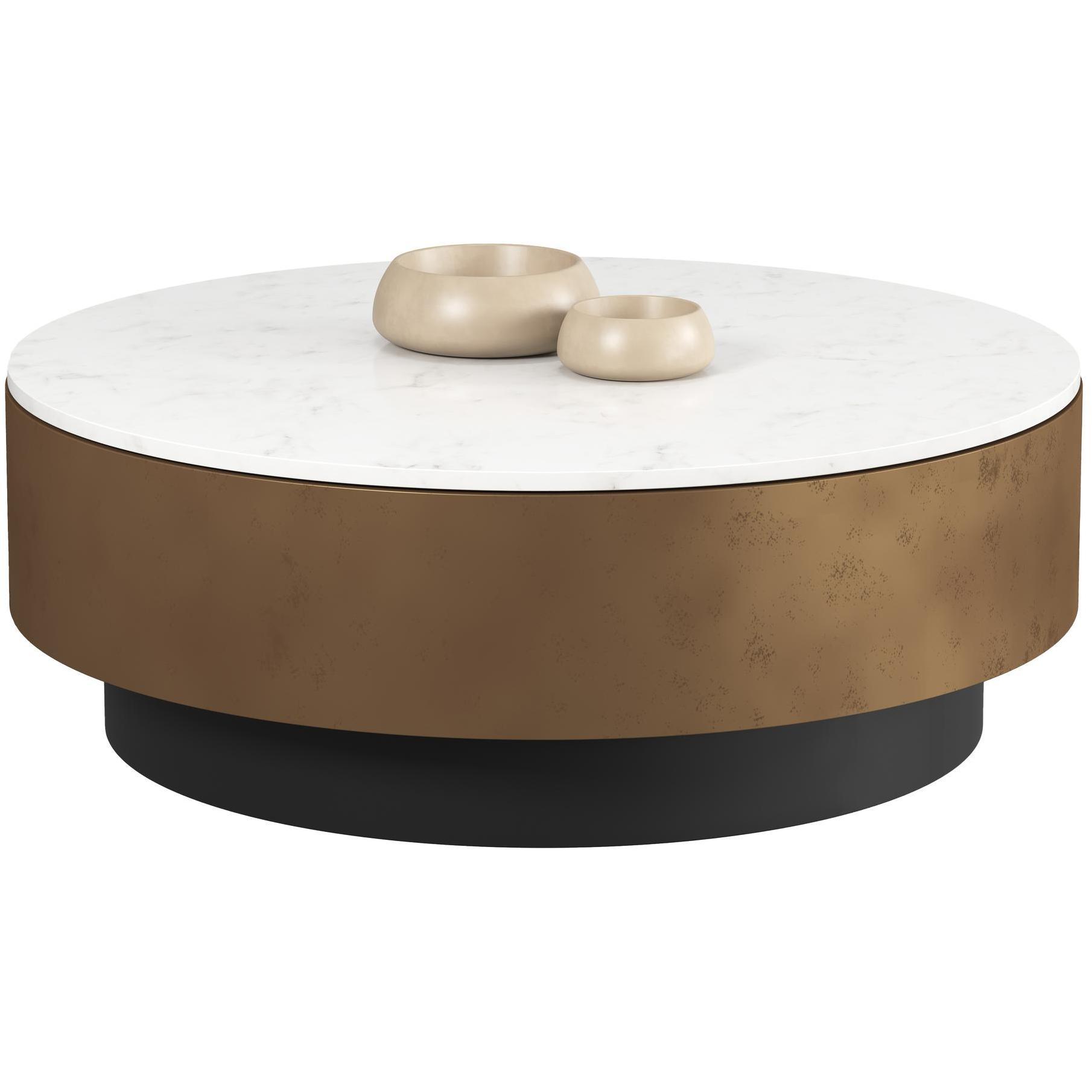 Exuding pure opulence, this splendid coffee table is designed to be noticed. Features a white marble top with a steel base in antique brass and black. As marble is a natural material, unique veining, pitting, fissures, micro-cracks and colour variations are all characteristics that add to the uniqueness and beauty of each piece. Made in India. With refined craftsmanship, this design was brought to life by skilled local artisans. Due to the nature of handcraftsmanship, unique imperfections such as fissures, markings and variations in colour and shape are welcomed and appreciated characteristics for a truly one-of-a-kind piece.