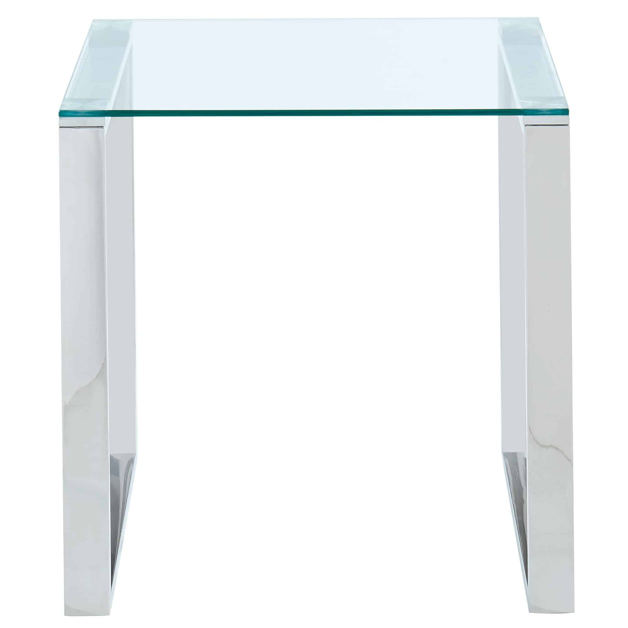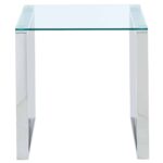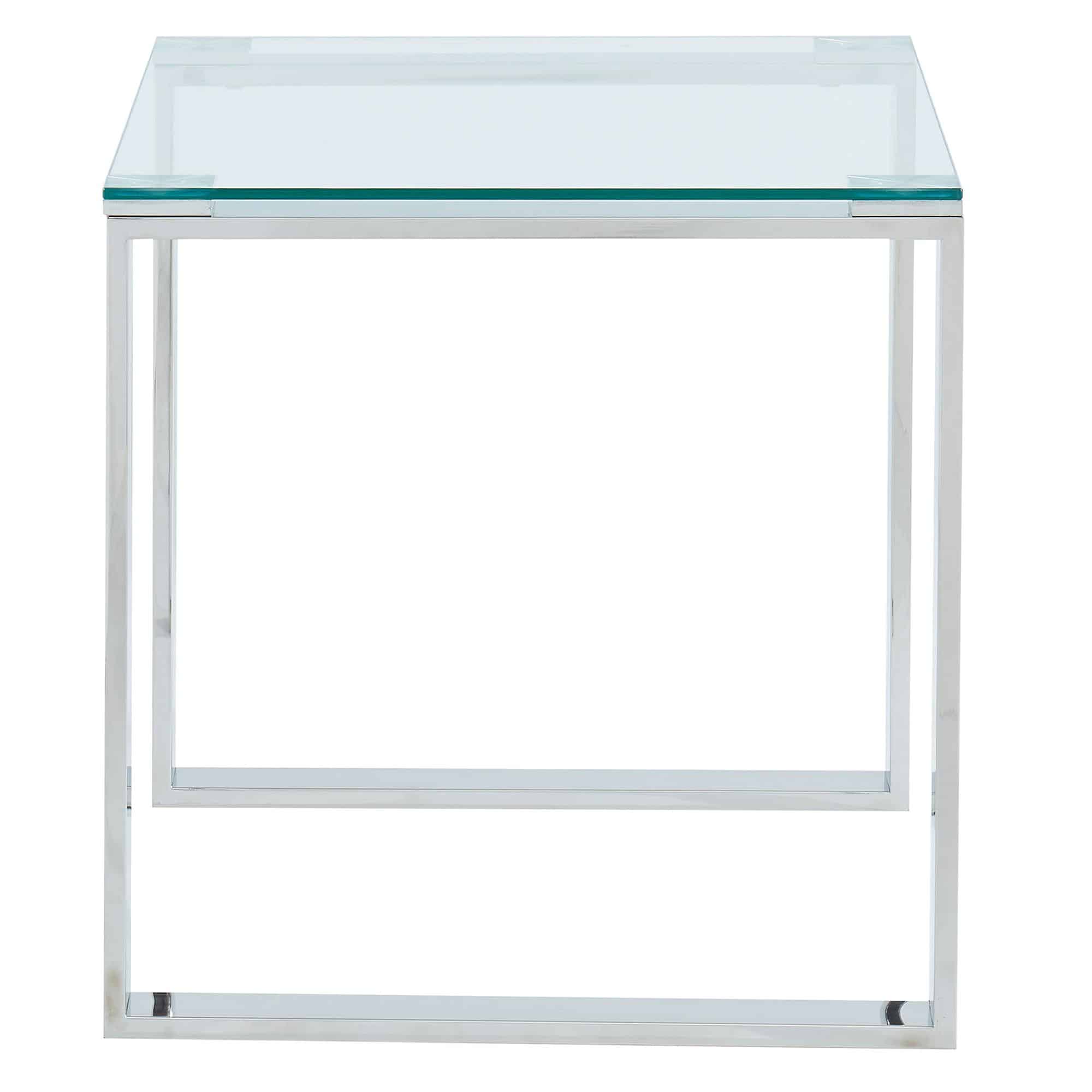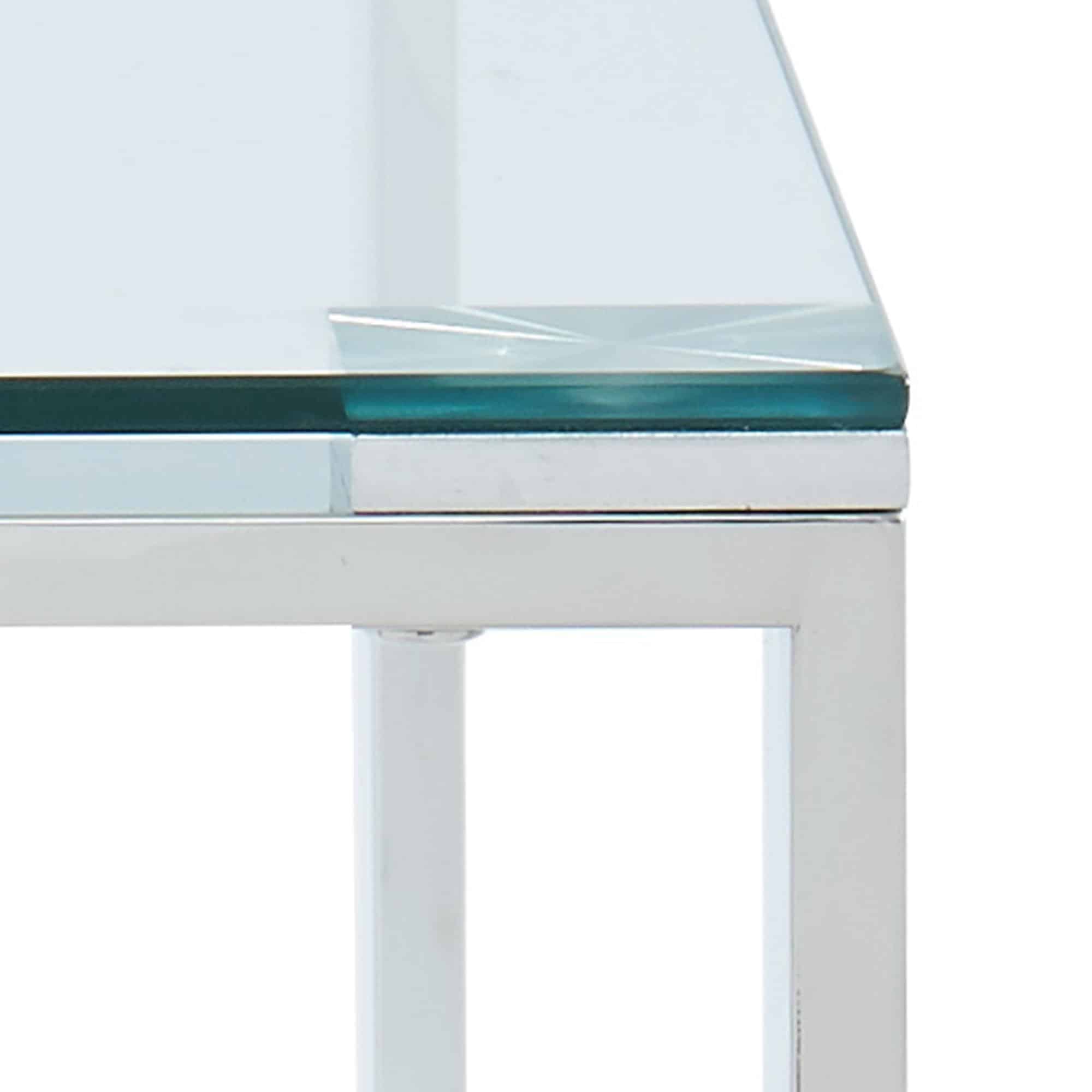 Create the perfect minimalist look with this collection of ultra contemporary tables. The polished silver stainless steel and the clear glass come together to create an airy, almost-not-there look that will open up your space while still keeping the functionality of a full-size accent table. Use with coordinating coffee and console tables in the living room, in the hallway, or as a bedside table.