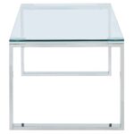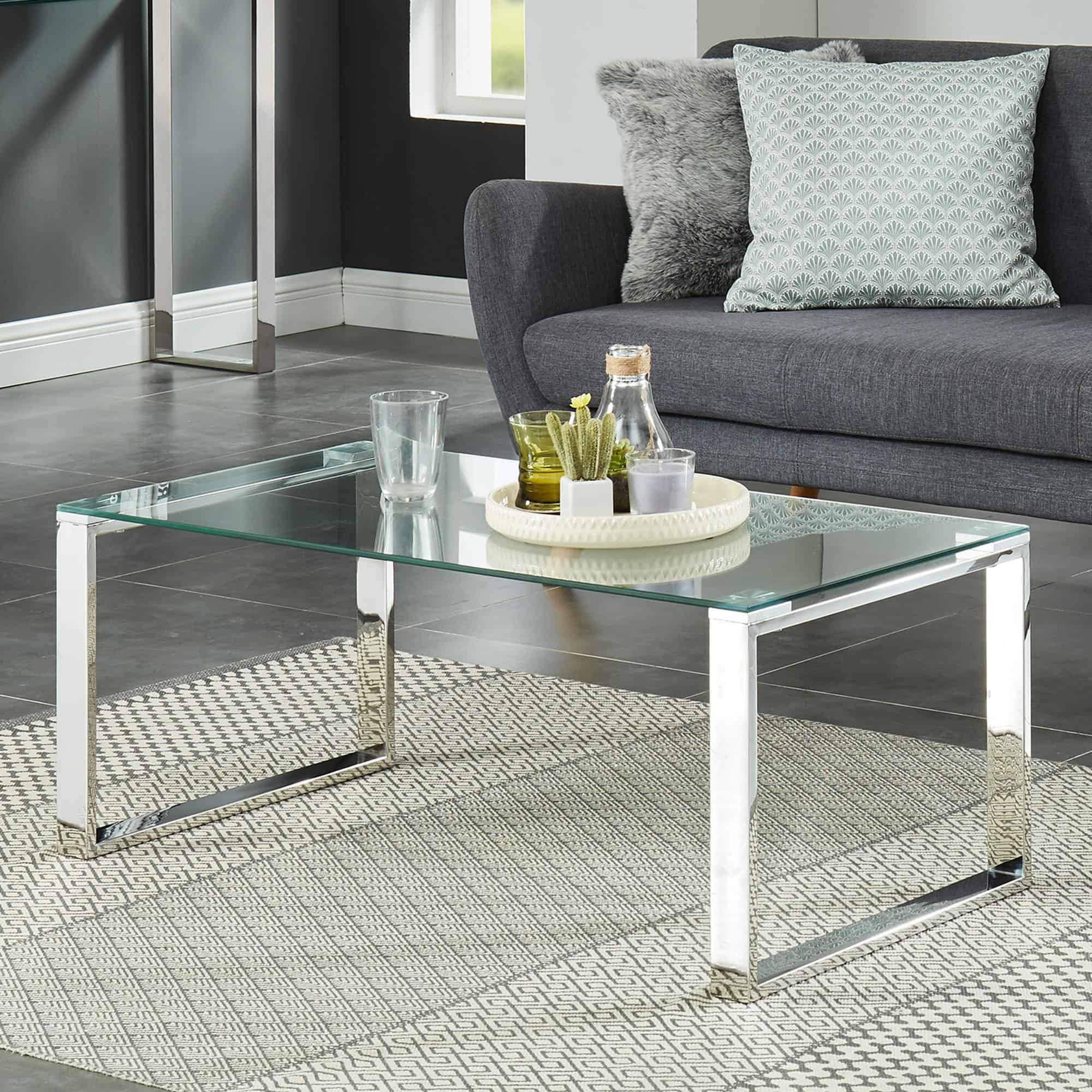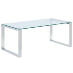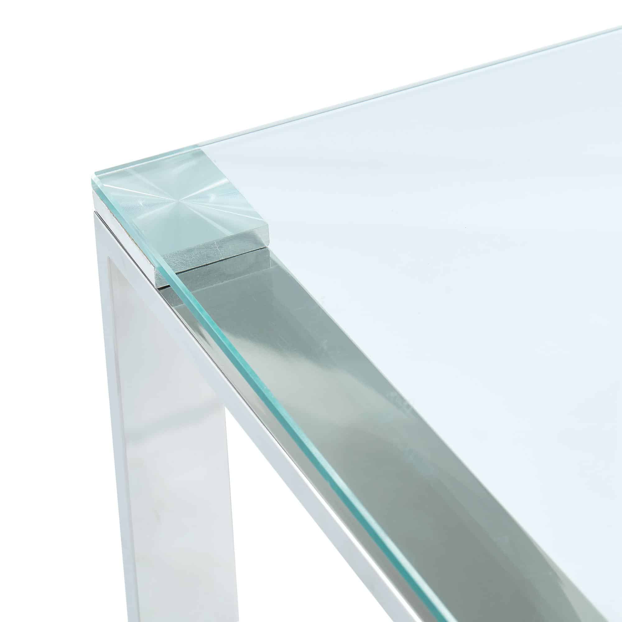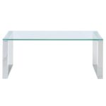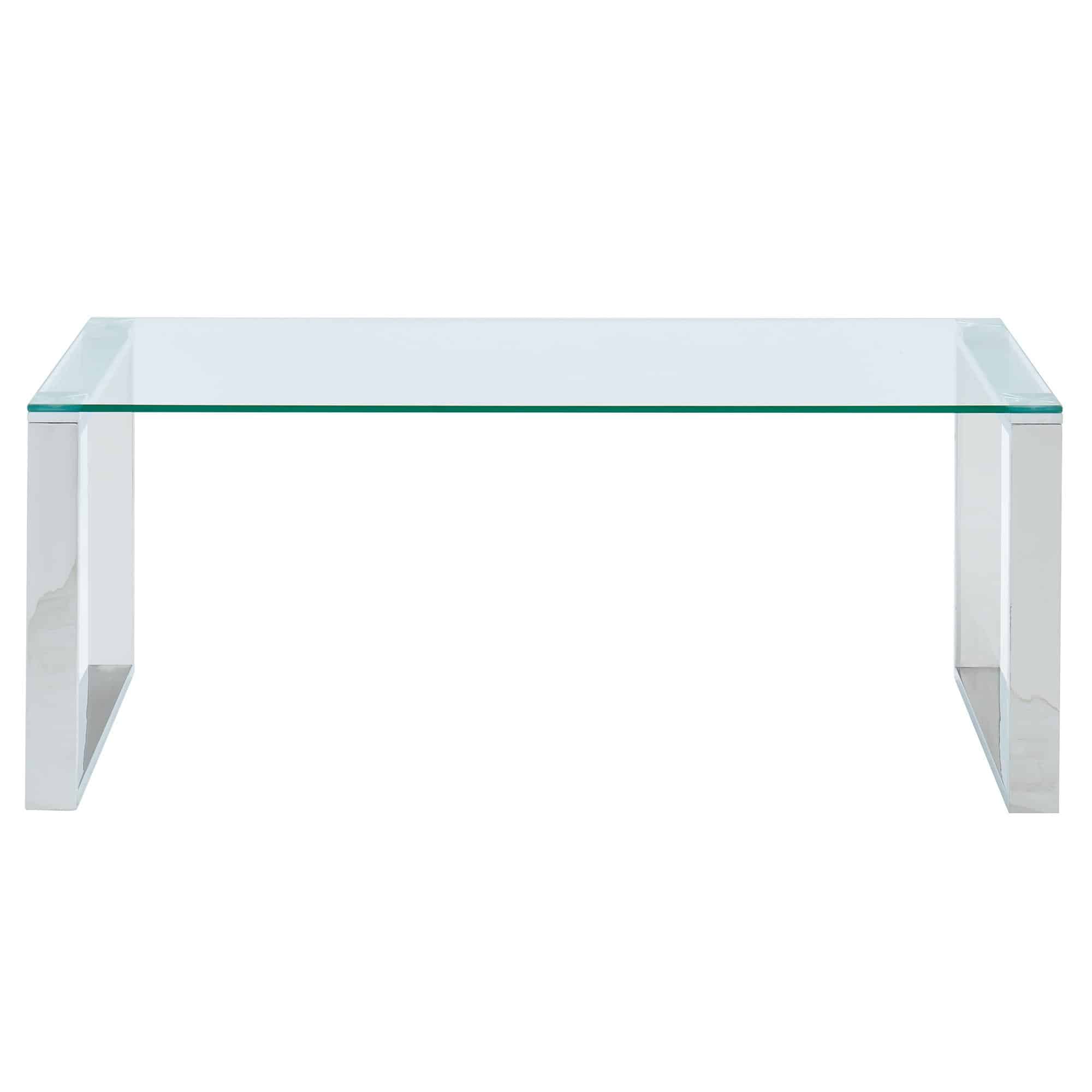 Create the perfect minimalist look with this collection of ultra contemporary tables. The polished silver stainless steel and the clear glass come together to create an airy, almost-not-there look that will open up your space while still keeping the functionality of a full-size coffee table. Use in a formal or casual living space.