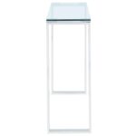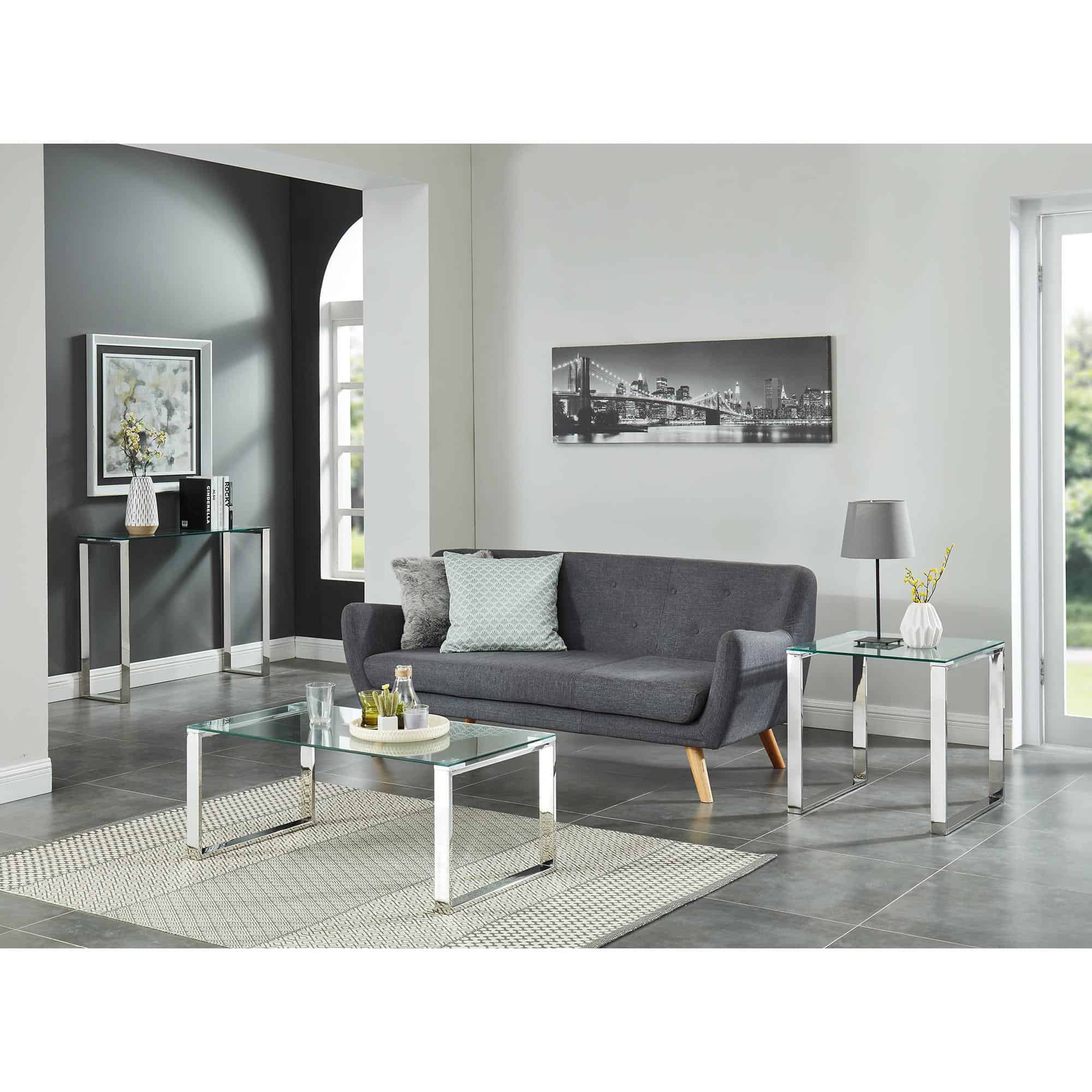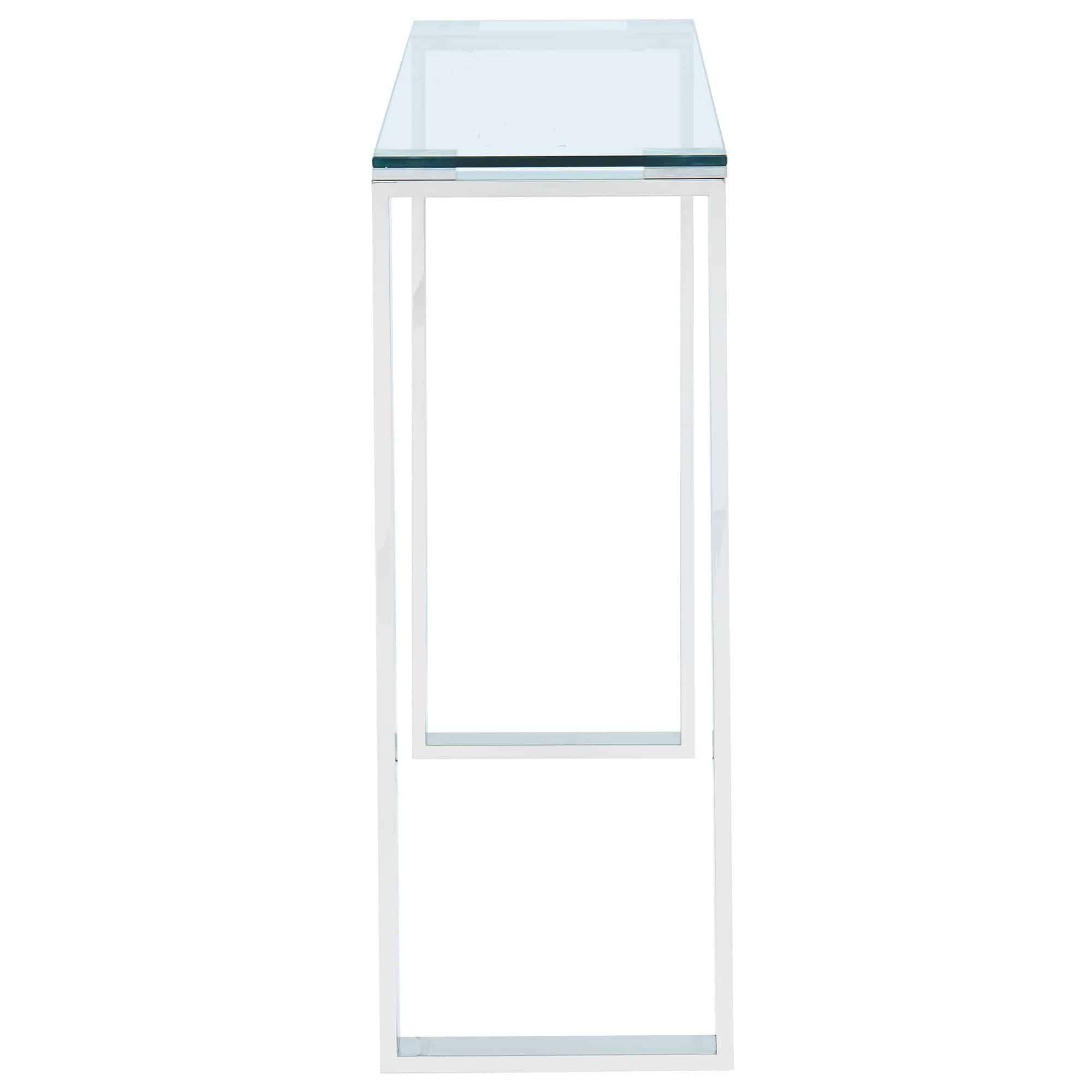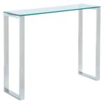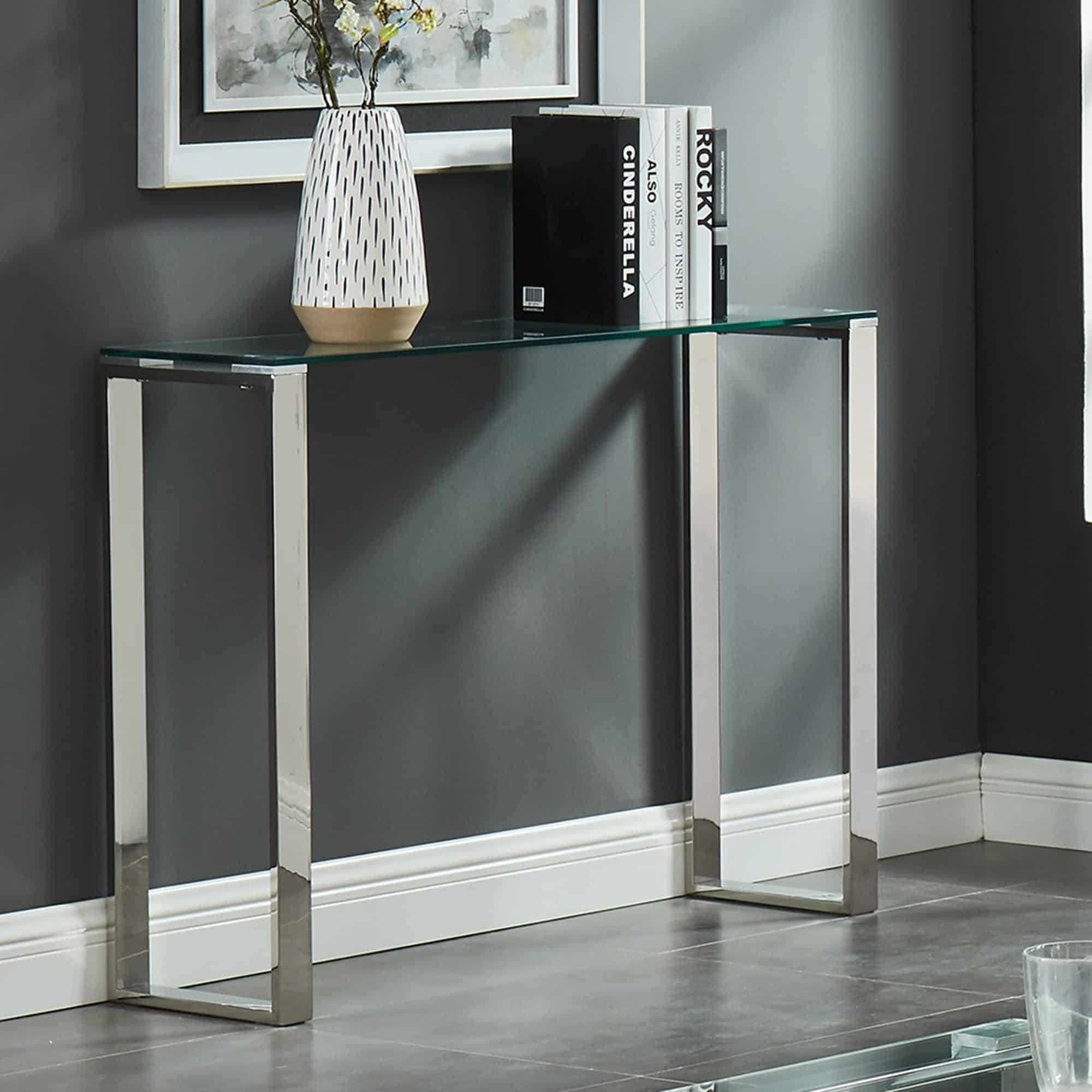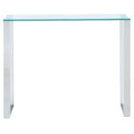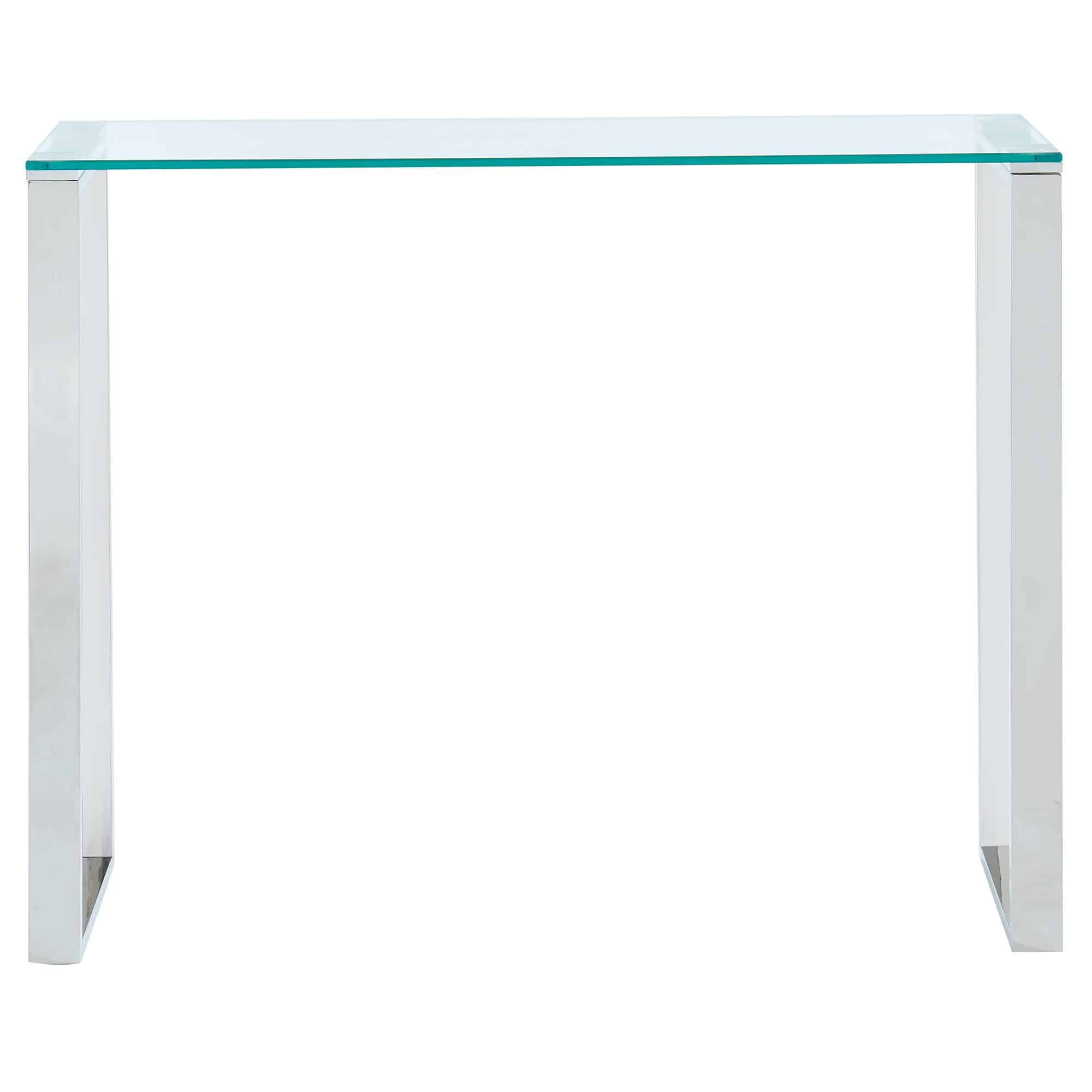 Create the perfect minimalist look with this collection of ultra contemporary tables. The polished stainless steel and the clear glass come together to create an airy, almost-not-there look that will open up your space. Use with coordinating coffee and accent tables in a living room, as a hallway table, or place with a sleek chair for a dressing table or desk.