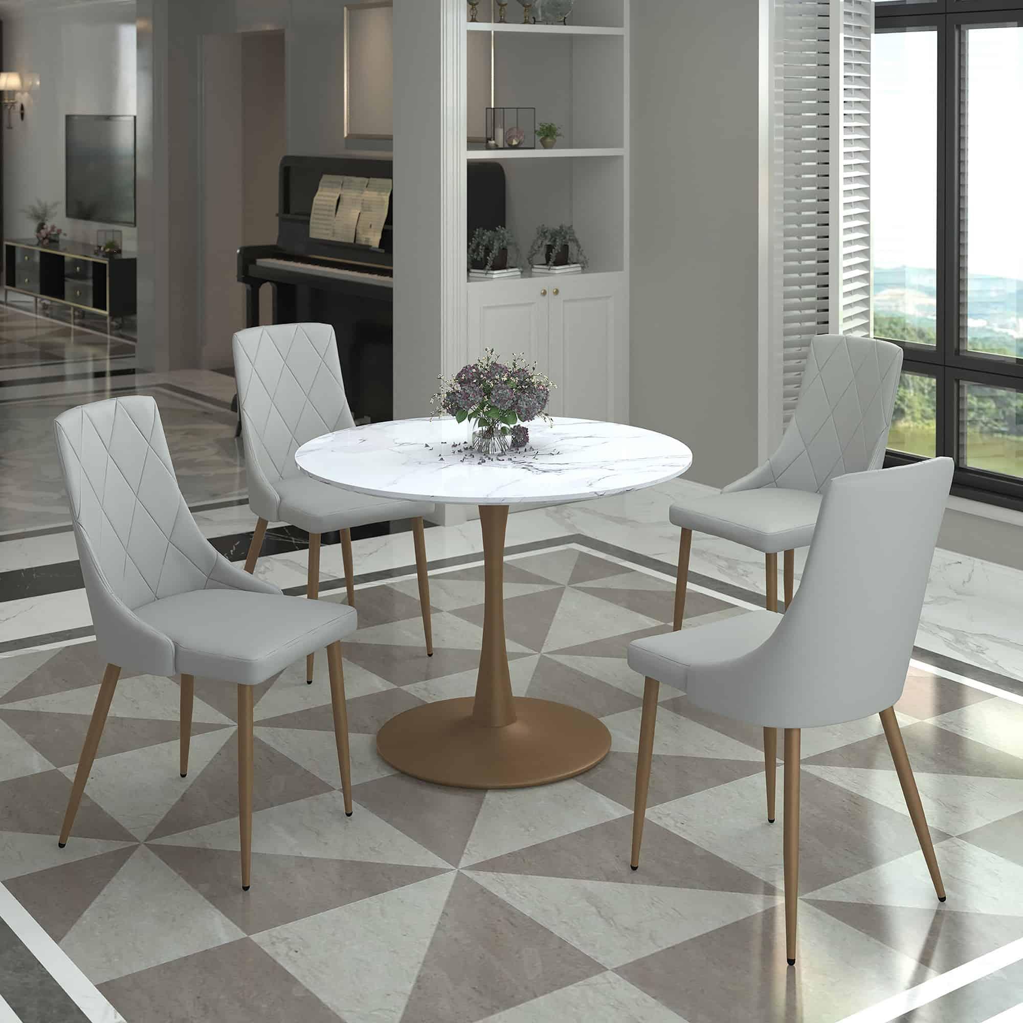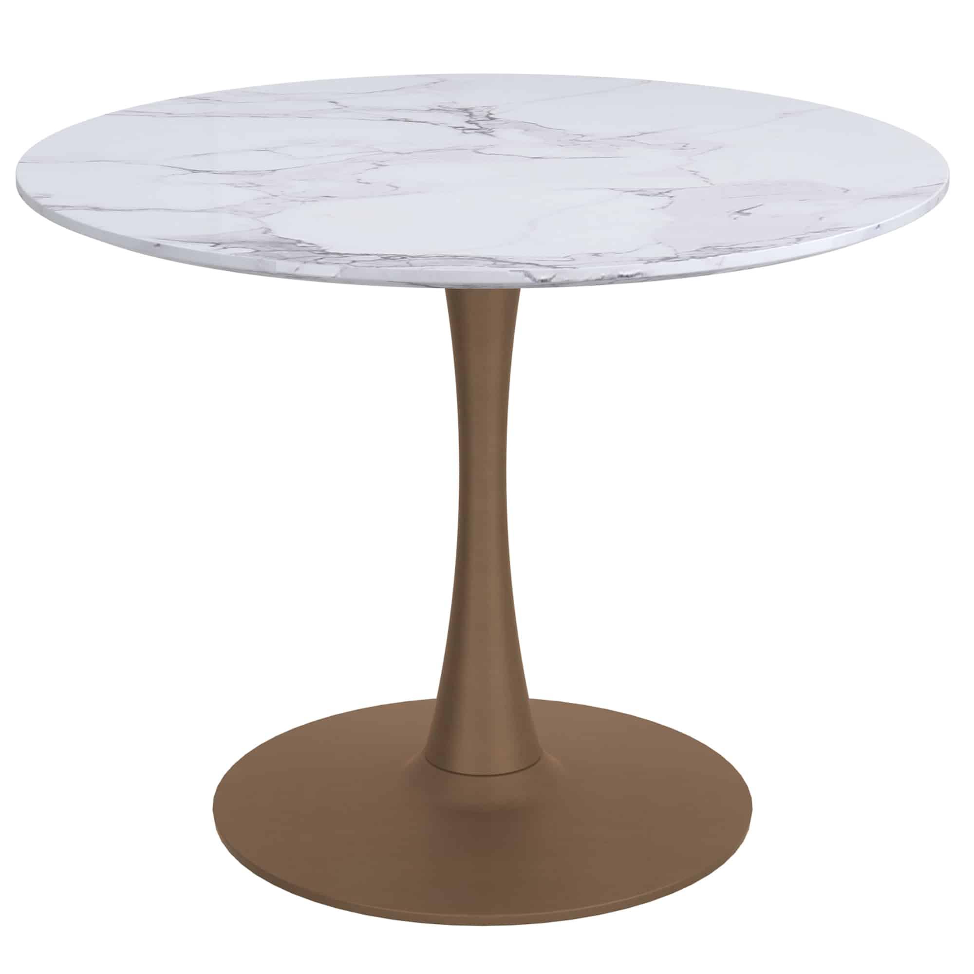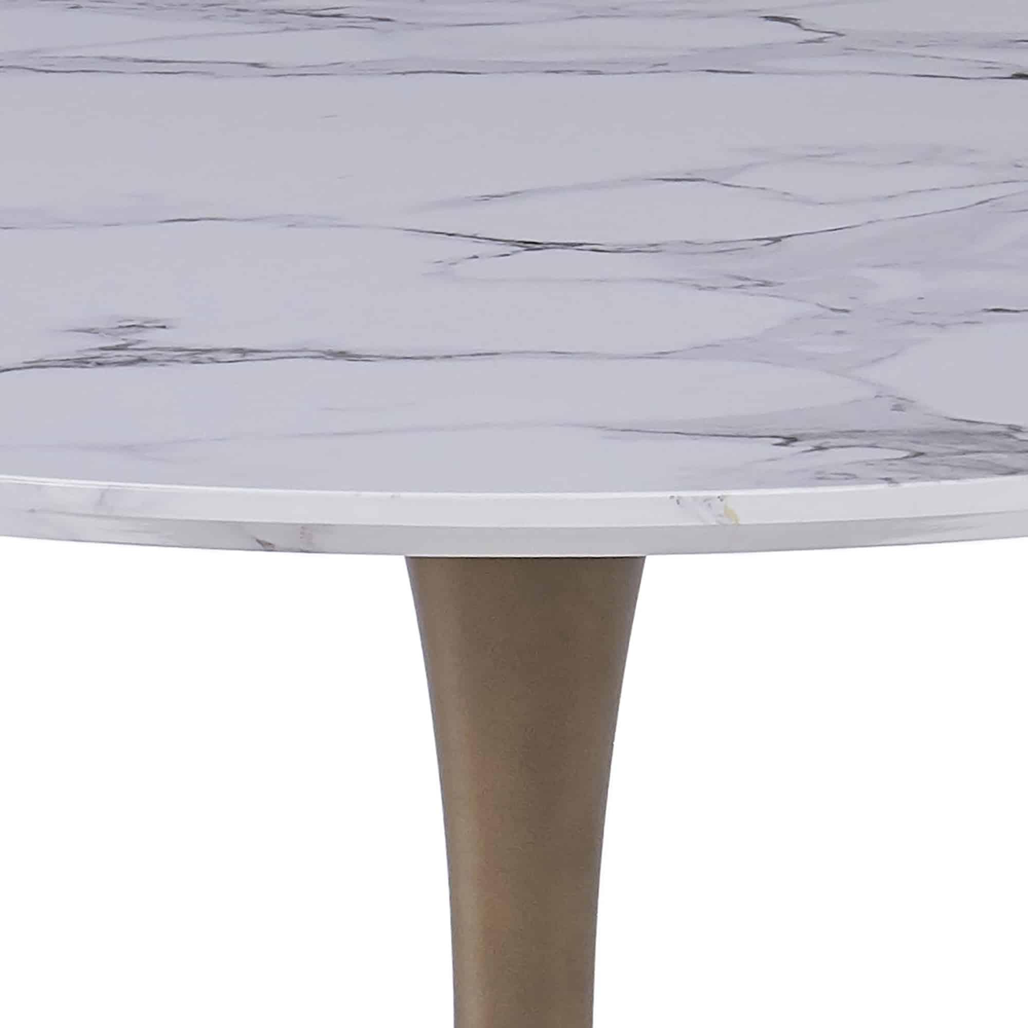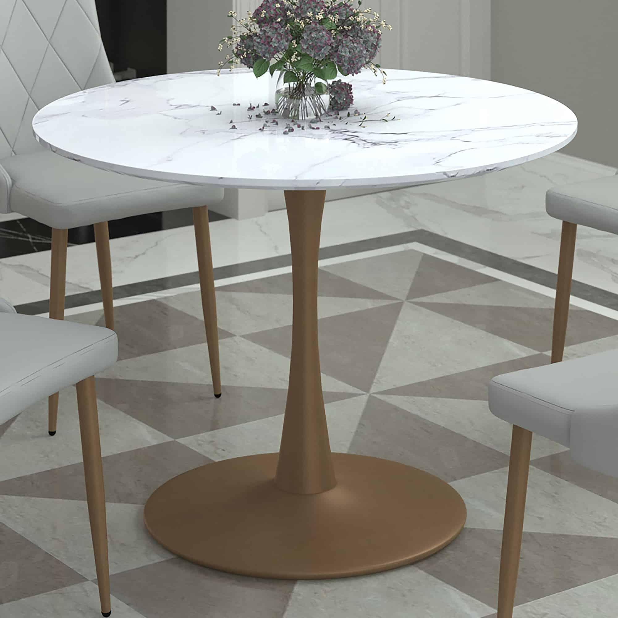 Zilo 40″ Round Dining Table in White Faux Marble and Aged Gold
