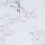 - Engineered wood table top with laminated veneer in a faux marble finish
