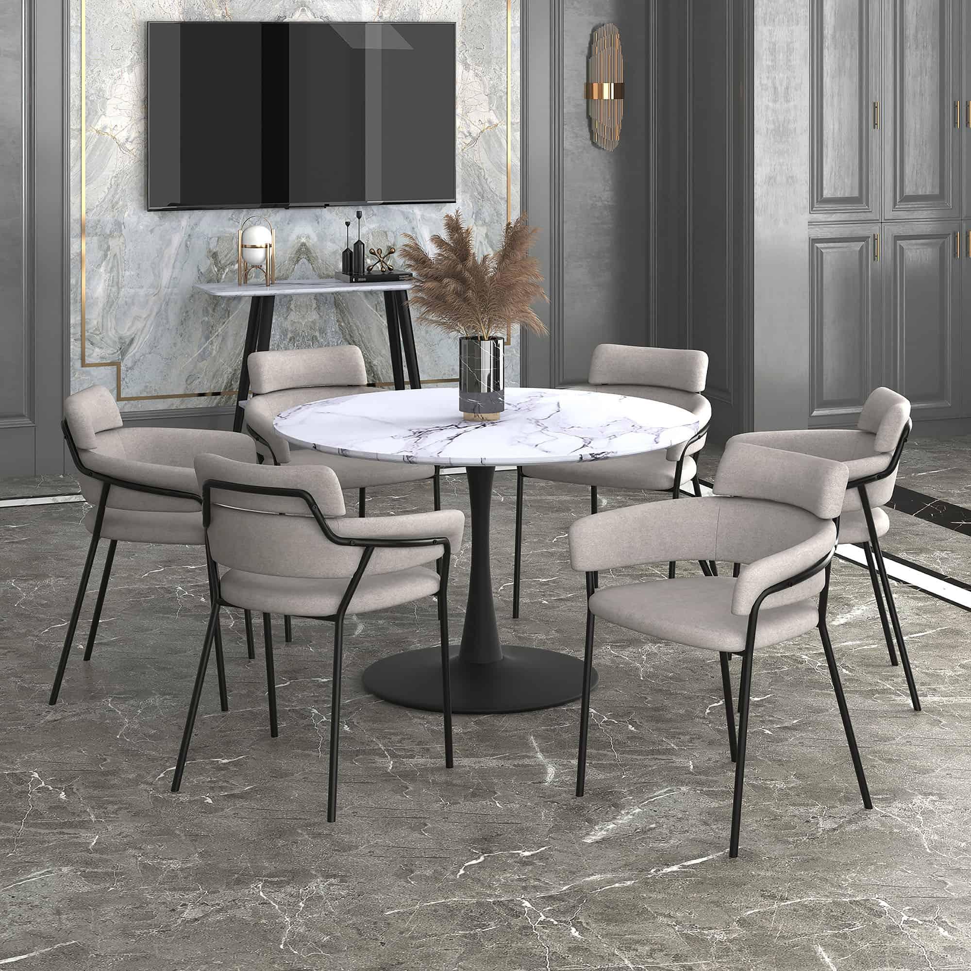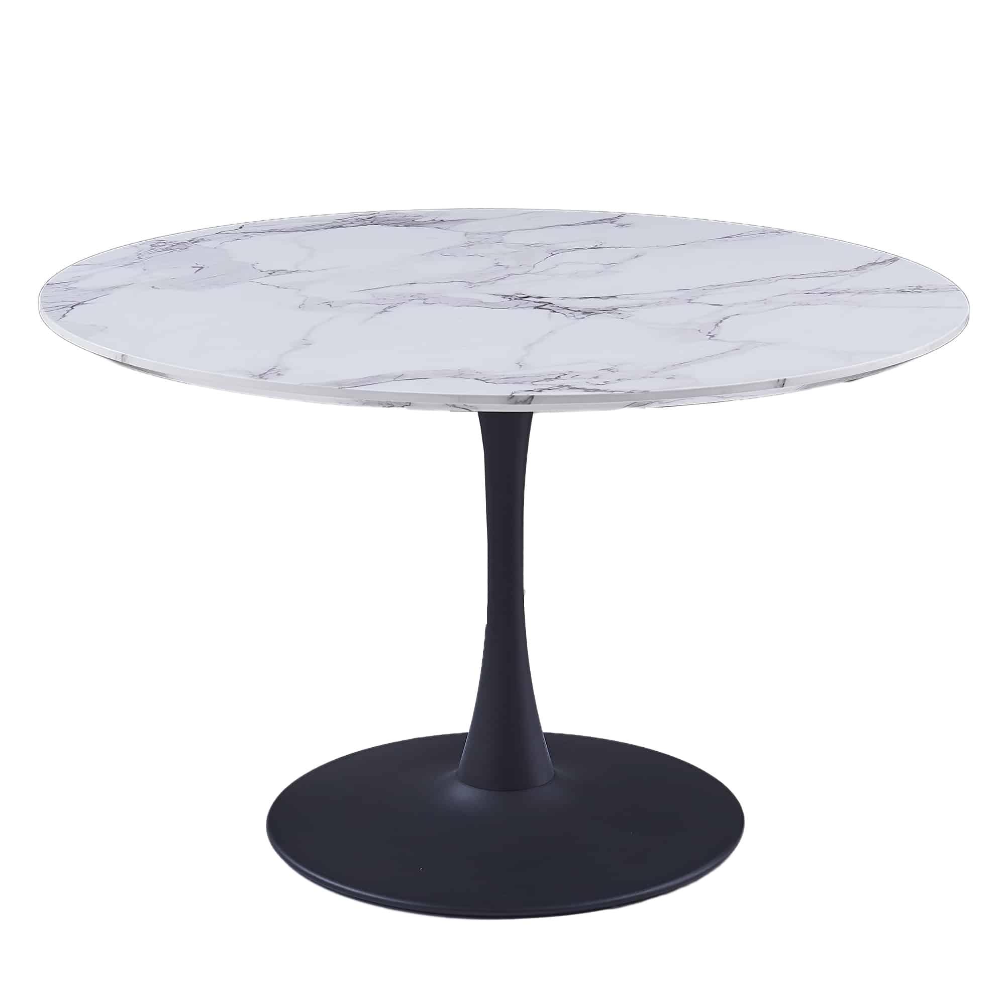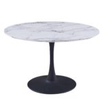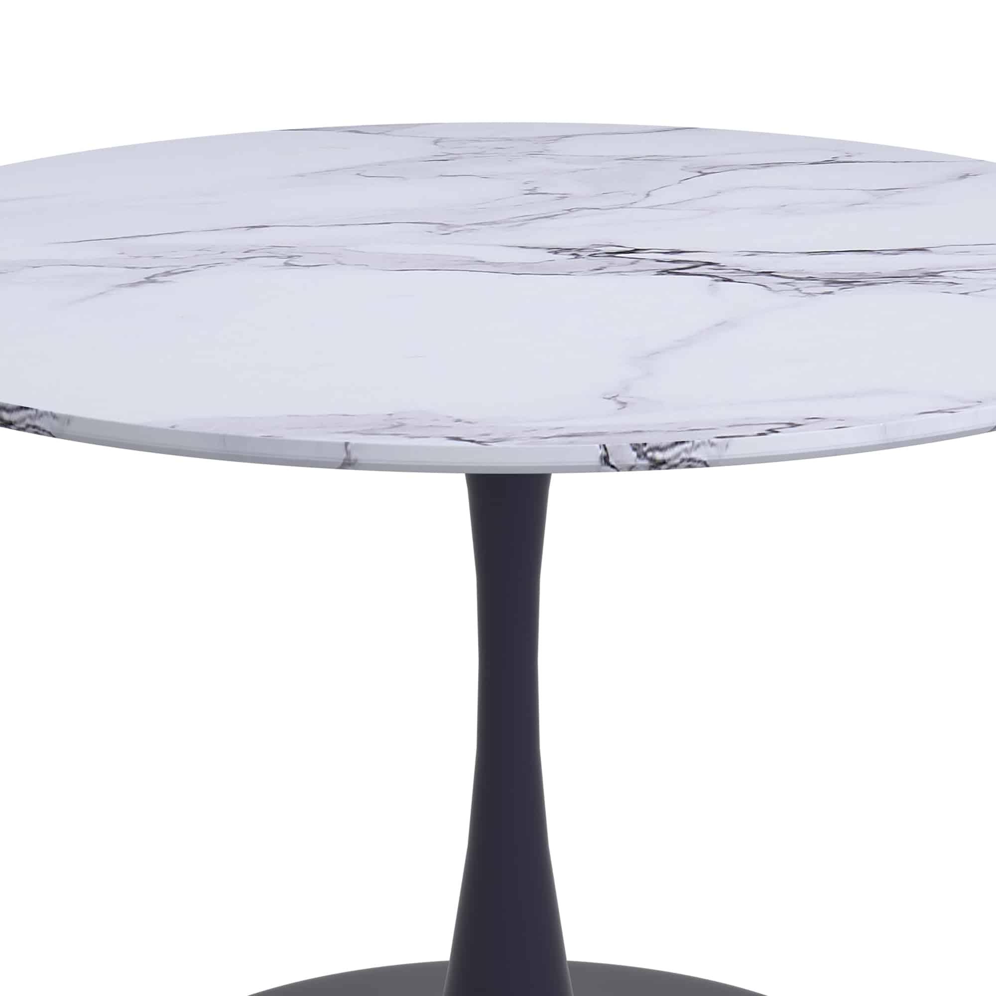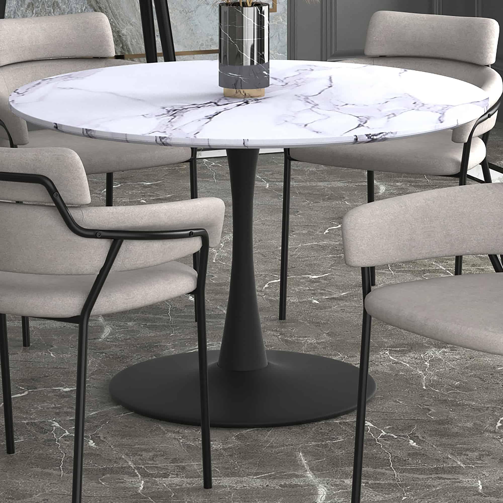 Zilo 48″ Round Dining Table in White Faux Marble and Black