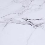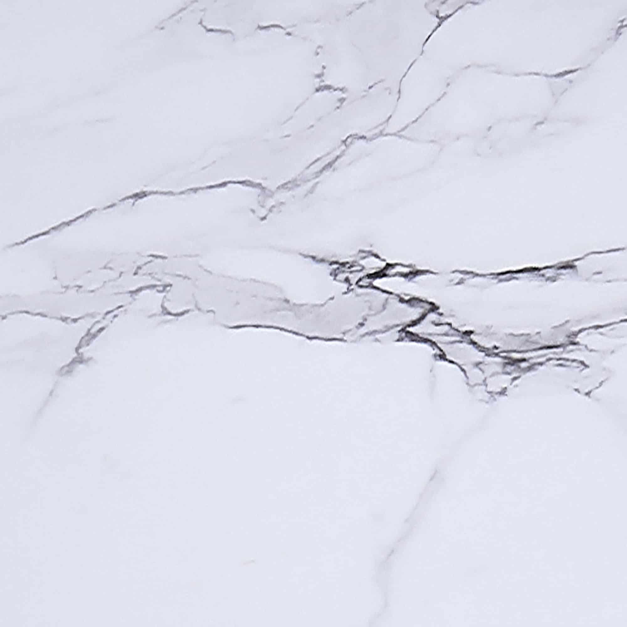 - Engineered wood table top with laminated veneer in a faux marble finish