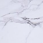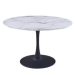 - Engineered wood table top with laminated veneer in a faux marble finish