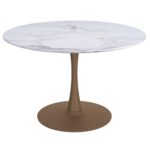 - Engineered wood table top with laminated veneer in a faux marble finish
