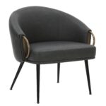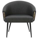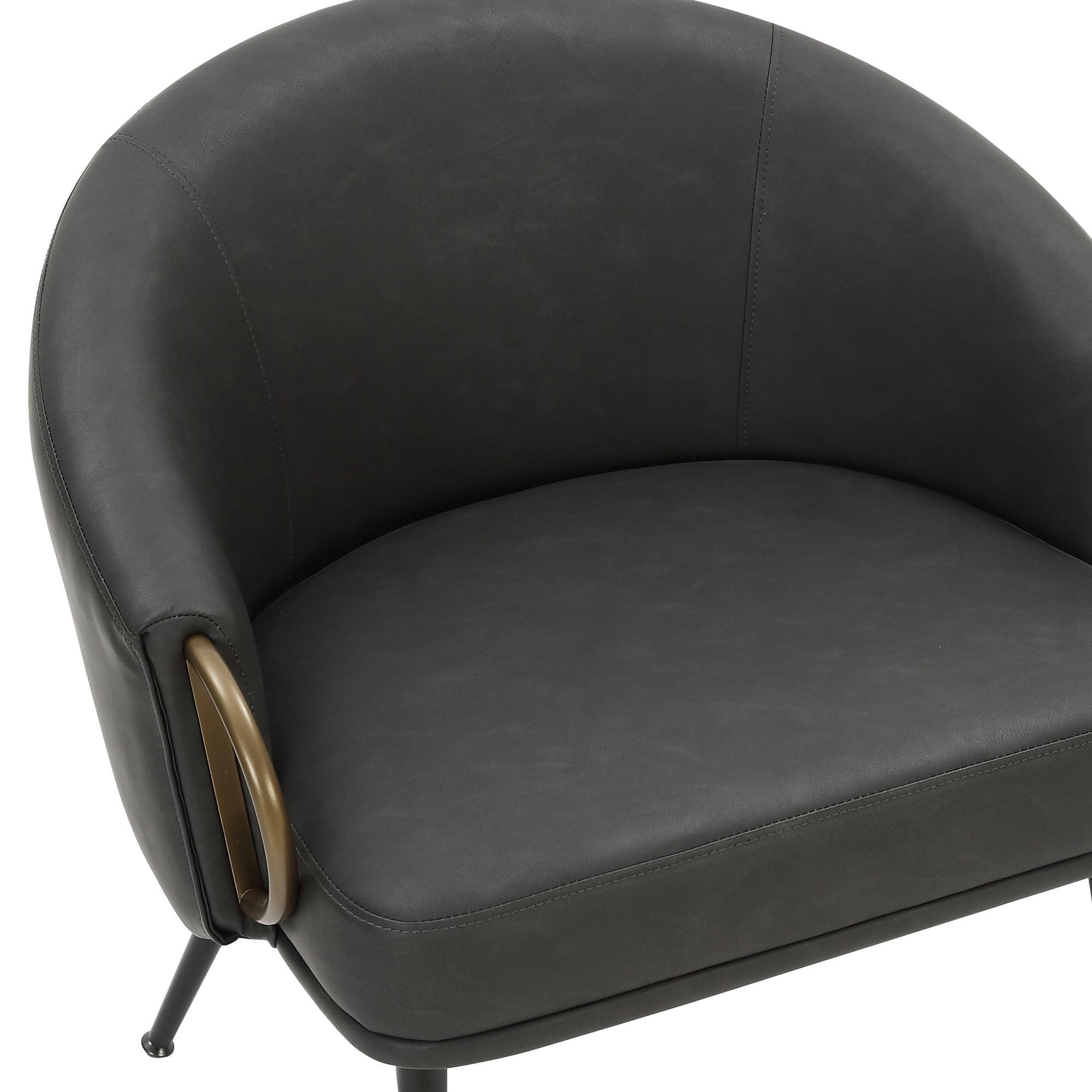 Zita Accent Chair in Vintage Charcoal Faux Leather and Black and Aged Gold