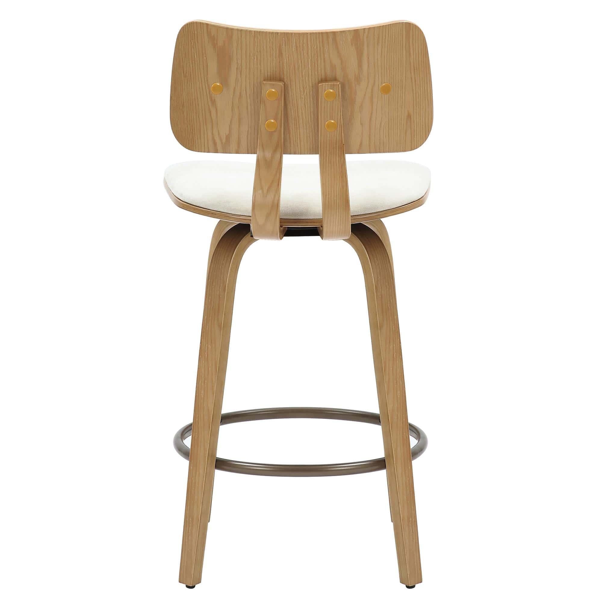 When the best of mid-century modern design is integrated perfectly into the current design world, you get gorgeous pieces like this stool. The bentwood frame and legs are beautifully finished in a natural wood finish, and the cushioning is all upholstered in a soft textured fabric – creating the perfect modern mid-century piece. The footrest is finished in dull aged gold and provides additional comfort. Full swivel allows for ease of use at any counter space.