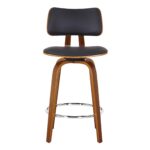 Zuni 26″ Counter Stool with Swivel in Black Faux Leather and Walnut